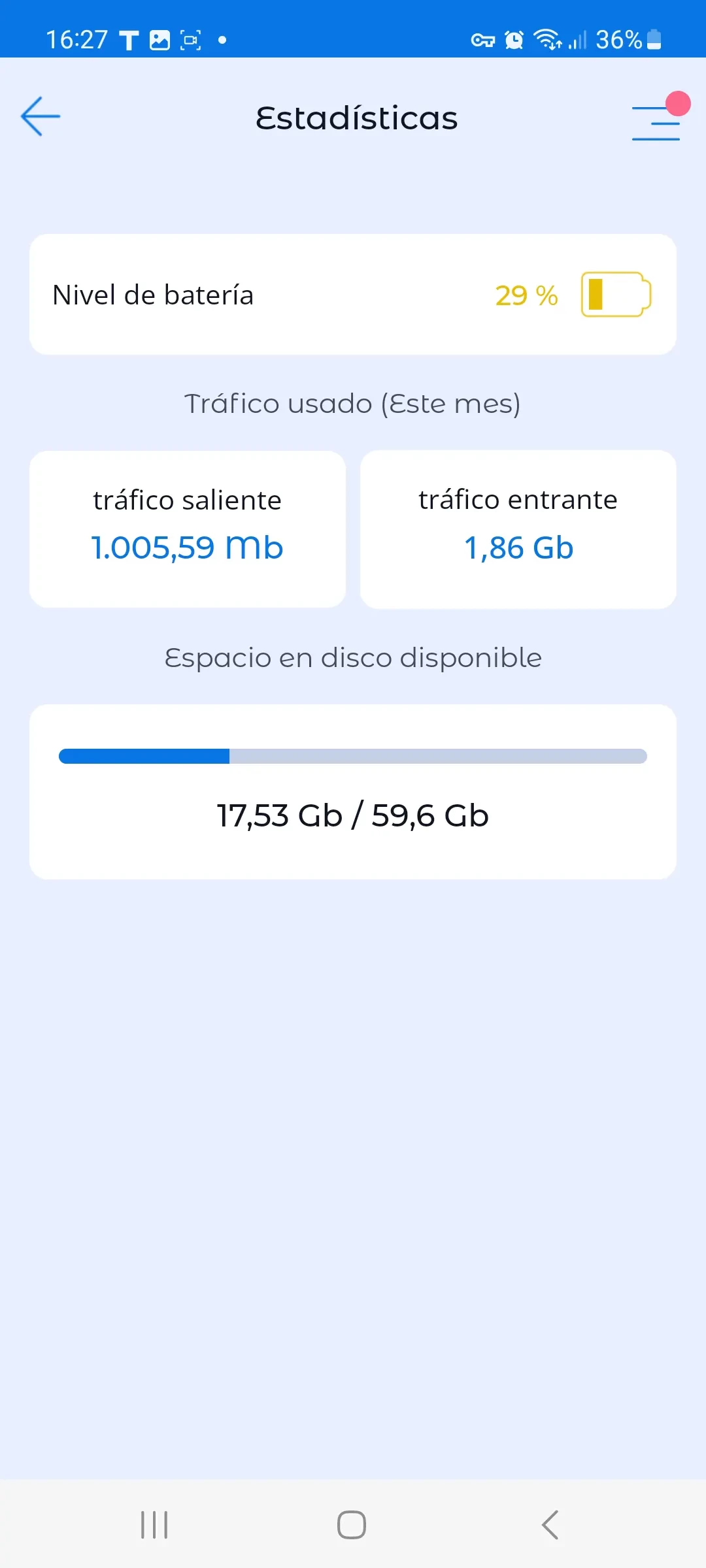 Visualiza el nivel de batería, el tráfico de internet consumido y la memoria disponible en el smartphone de tu hijo.