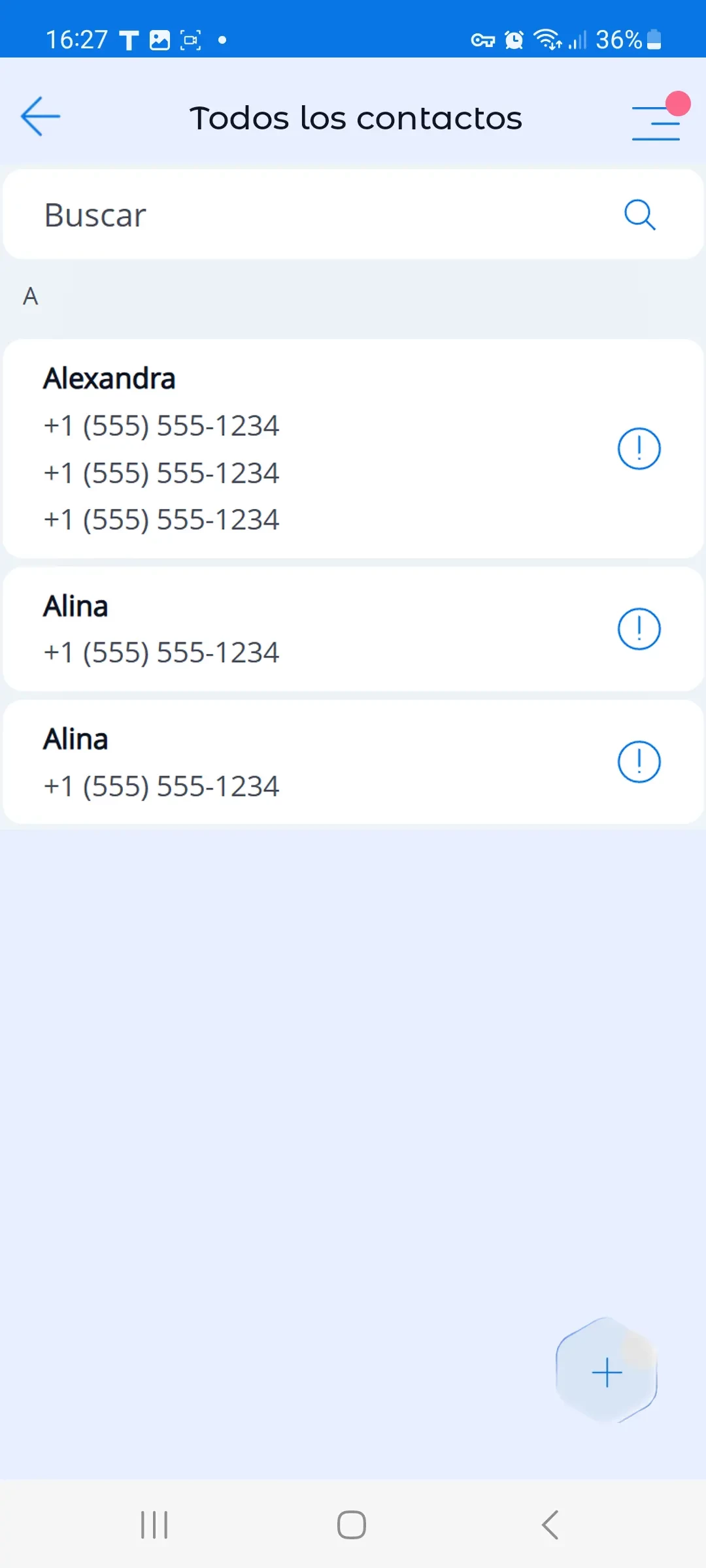 Para agregar un contacto, haz clic en el botón “+” en la parte inferior de la pantalla.