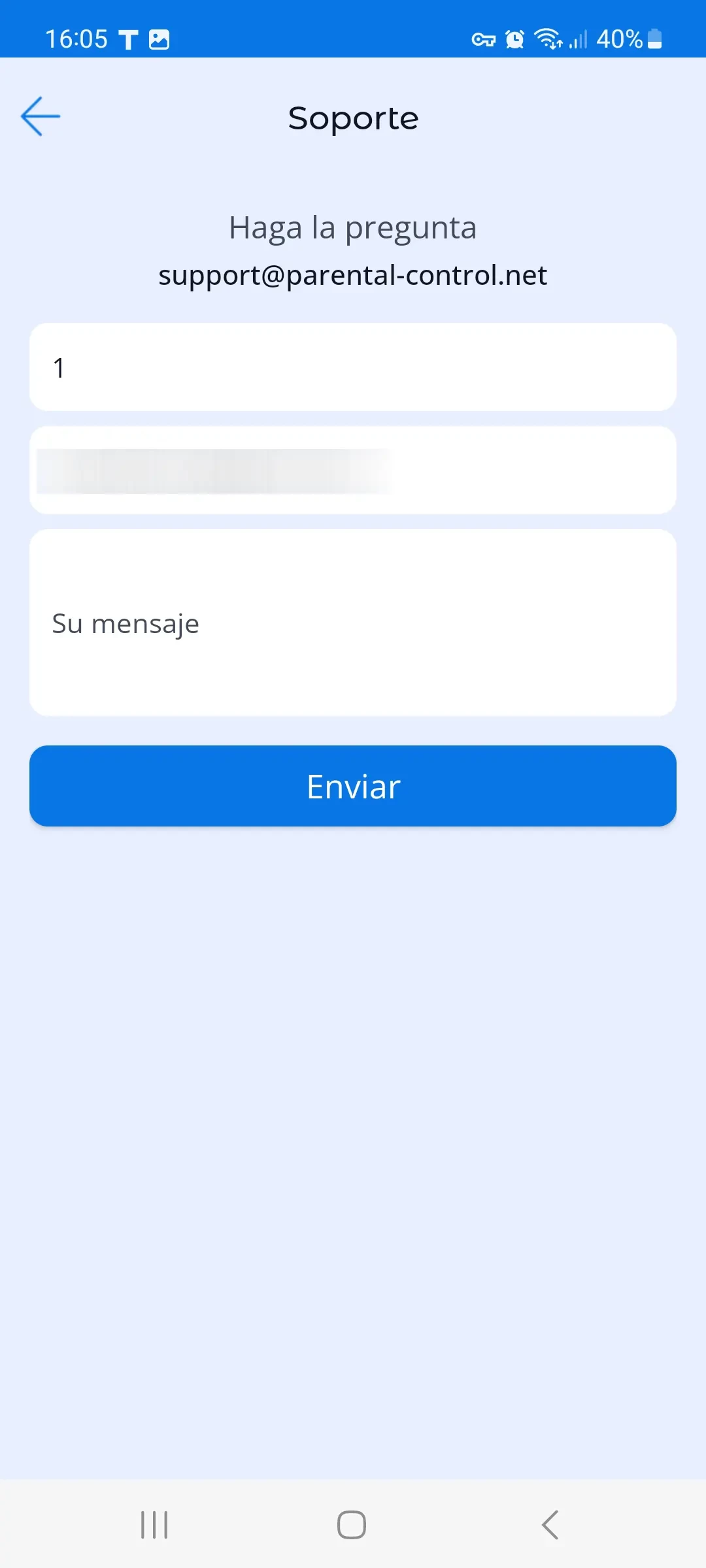 5. Soporte. En este menú, puedes obtener ayuda rápida sobre temas relacionados con el uso de la aplicación. La respuesta será enviada a la dirección de correo electrónico que especificaste al registrarte.