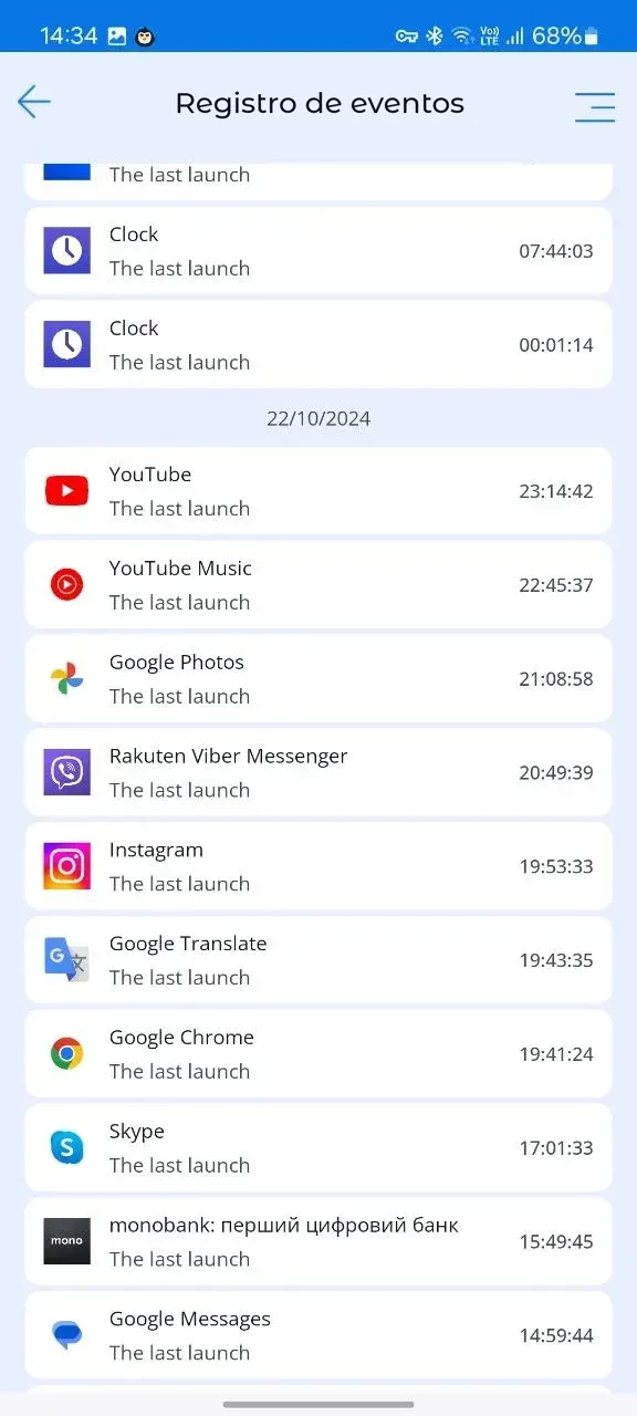La Aplicación de control parental Kroha permite a los padres ver todas las acciones del niño en su smartphone en orden cronológico. Los padres podrán ver qué aplicaciones se utilizaron y cuándo, a quién llamaron, a quién enviaron mensajes de texto, qué fotos subieron, y así sucesivamente.