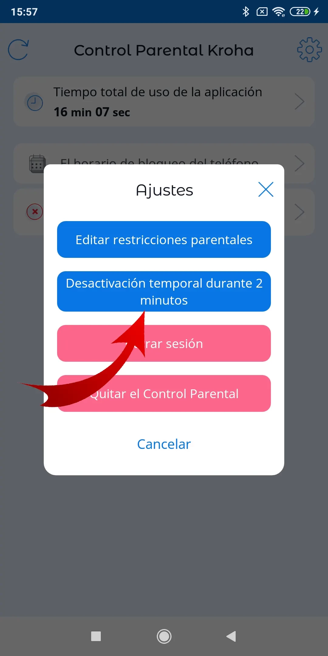 Si su hijo intenta acceder a algunas secciones de configuración en el smartphone, el teléfono se bloqueará. Si aún necesita acceder a la configuración y realizar alguna acción, debe ingresar el código PIN que el padre estableció previamente durante la configuración inicial de la aplicación. Una vez que se introduce el PIN, los padres tendrán acceso a la configuración durante 2 minutos.