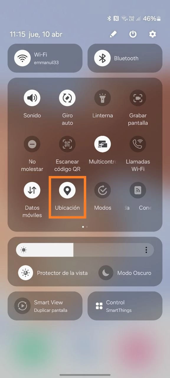 Para recibir datos de geolocalización, el “Acceso a Geodatos” debe estar habilitado en el teléfono de tu hijo. Para ello, habilita la opción “Acceso a Geodatos” en el dispositivo del niño en la “barra de notificaciones”.