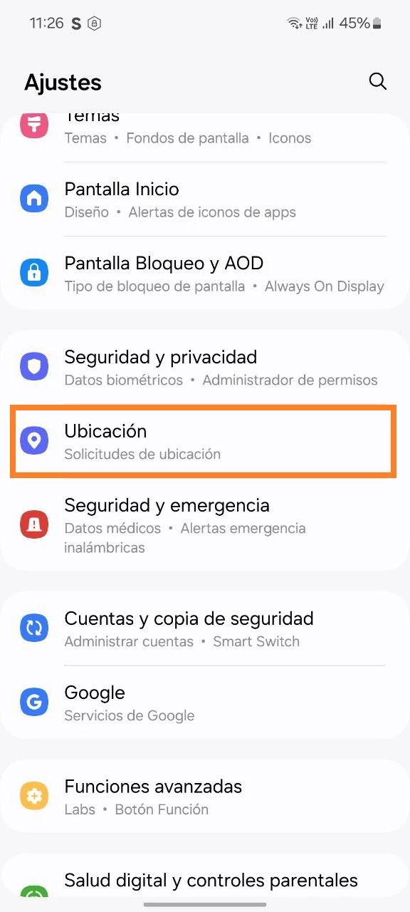 - Selecciona la opción “Satélites GPS” (en algunos dispositivos, esto puede aparecer como “Ubicación” o “Servicios de Ubicación” o “Configuraciones Avanzadas”);