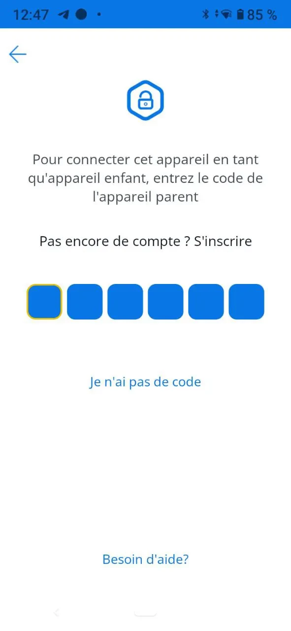 Si aucun appareil enfant n'a encore été ajouté à votre compte, vous verrez un écran avec un code pour connecter un appareil enfant.