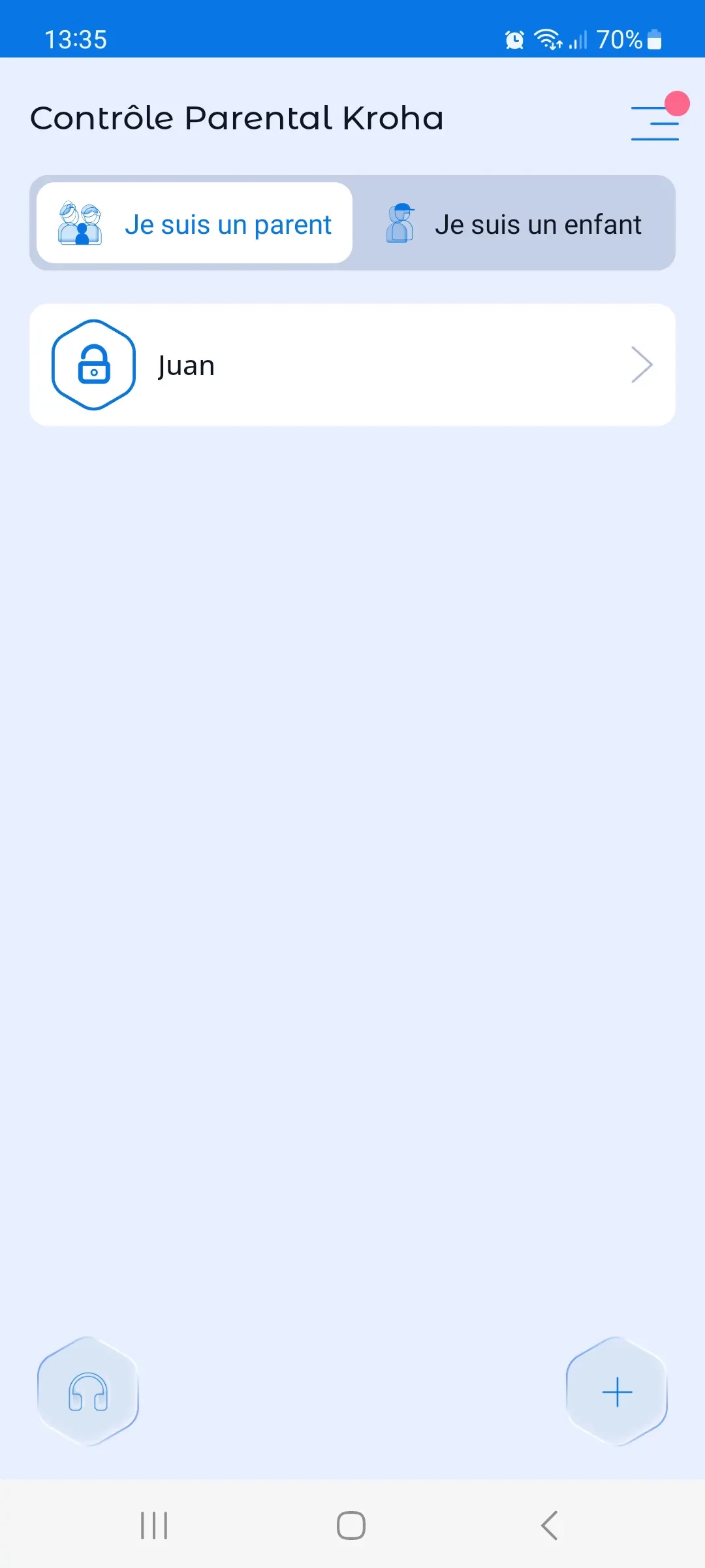 2. Ouvrez l'application Control Parental Kroha sur votre smartphone ;