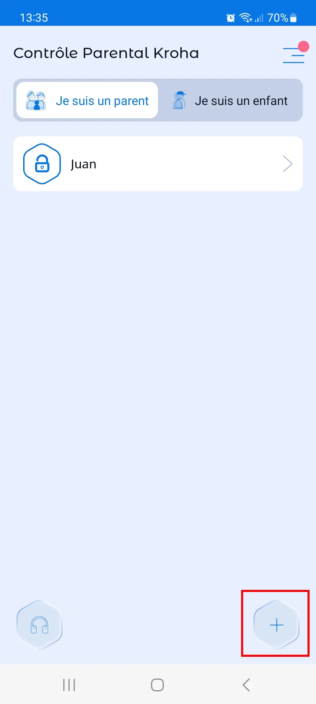 1. Ouvrez l'application Contrôle Parental Kroha sur le premier appareil du parent ;
