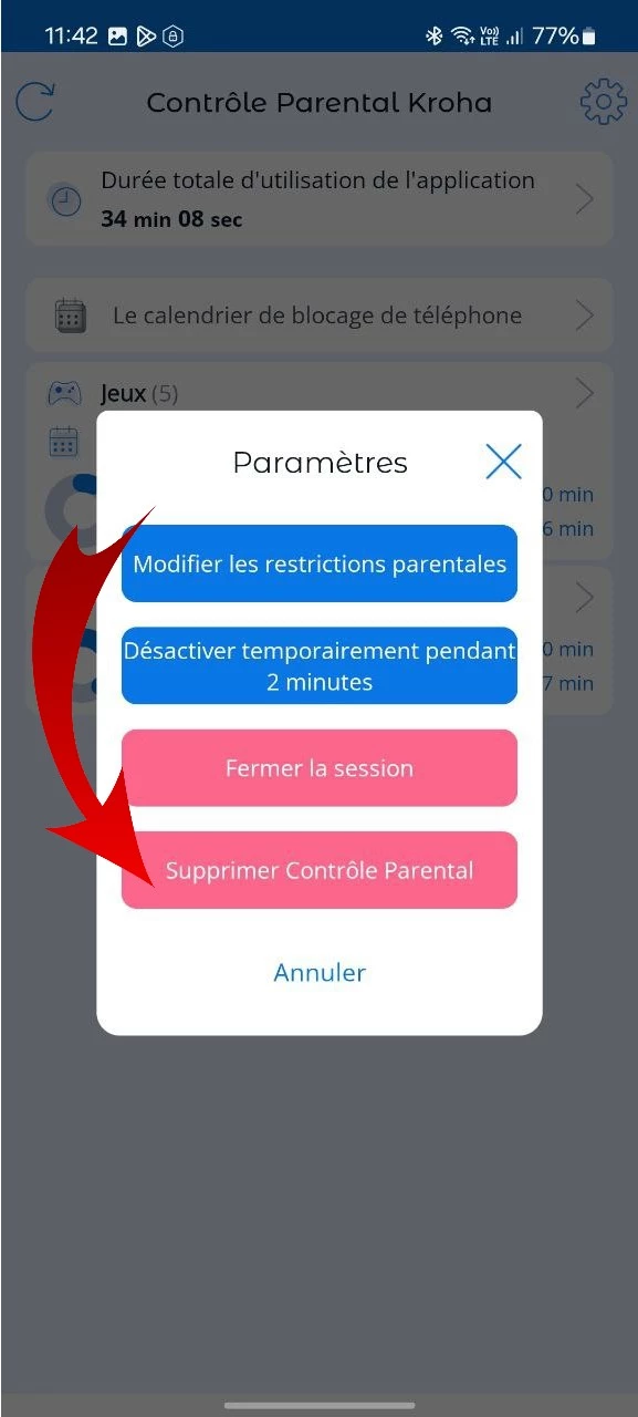 Comment désinstaller un contrôle parental Kroha sur Android ?