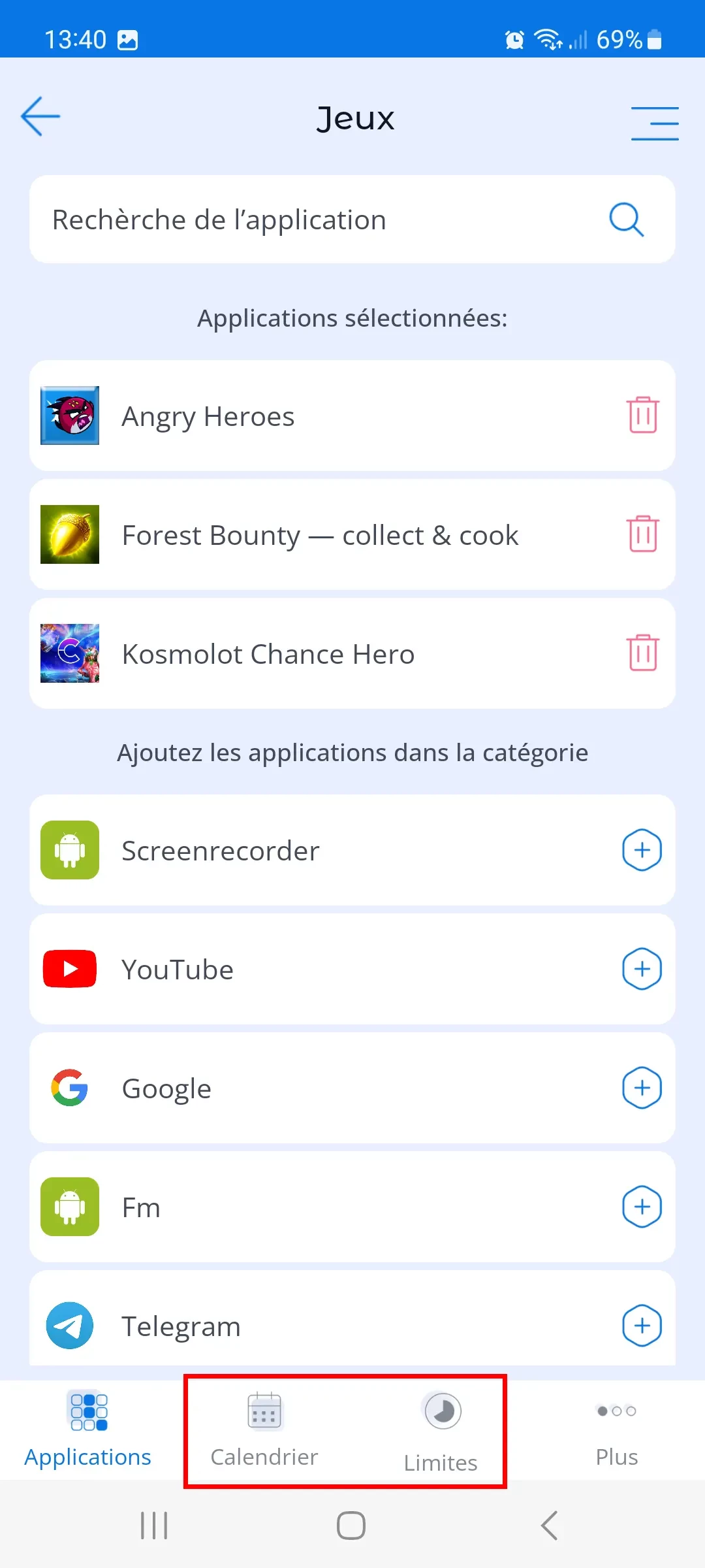 Afin que les parents puissent limiter le temps que leur enfant passe sur des jeux ou d'autres applications, ils doivent définir des limites sur une certaine catégorie d'applications.