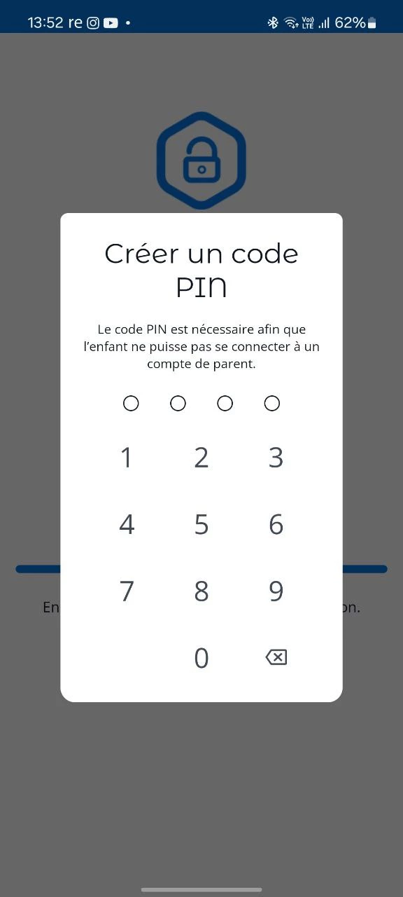 Ensuite, l’Appli de contrôle parental Kroha Advanced s’ouvrira sur le smartphone/tablette de l’enfant avec un écran pour créer un code PIN. Créez un code PIN.