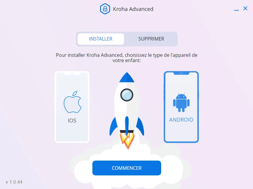 - Accédez à notre page web https://advanced.parental-control.net/fr et installez l’Appli de contrôle parental Kroha Advanced sur votre ordinateur ou ordinateur portable.