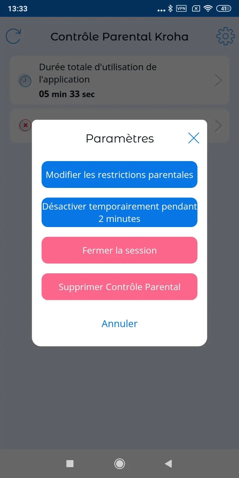 1. Connectez-vous à l'app para controlar el móvil del hijo Kroha depuis le smartphone de votre enfant et ouvrez “Modifier les restrictions parentales”.