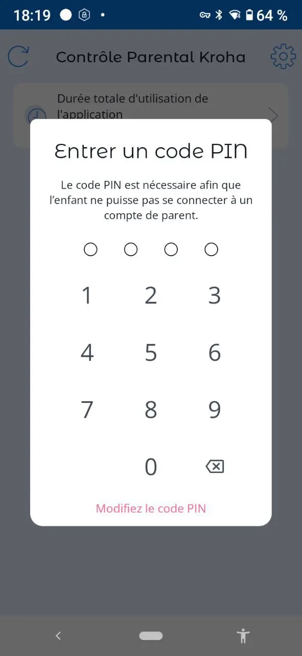 Le code PIN peut varier en fonction du téléphone. Si vous changez le code PIN sur votre appareil, il ne sera pas modifié sur l'appareil de votre enfant et vice versa : cela doit être pris en compte lors de la tentative de changement.