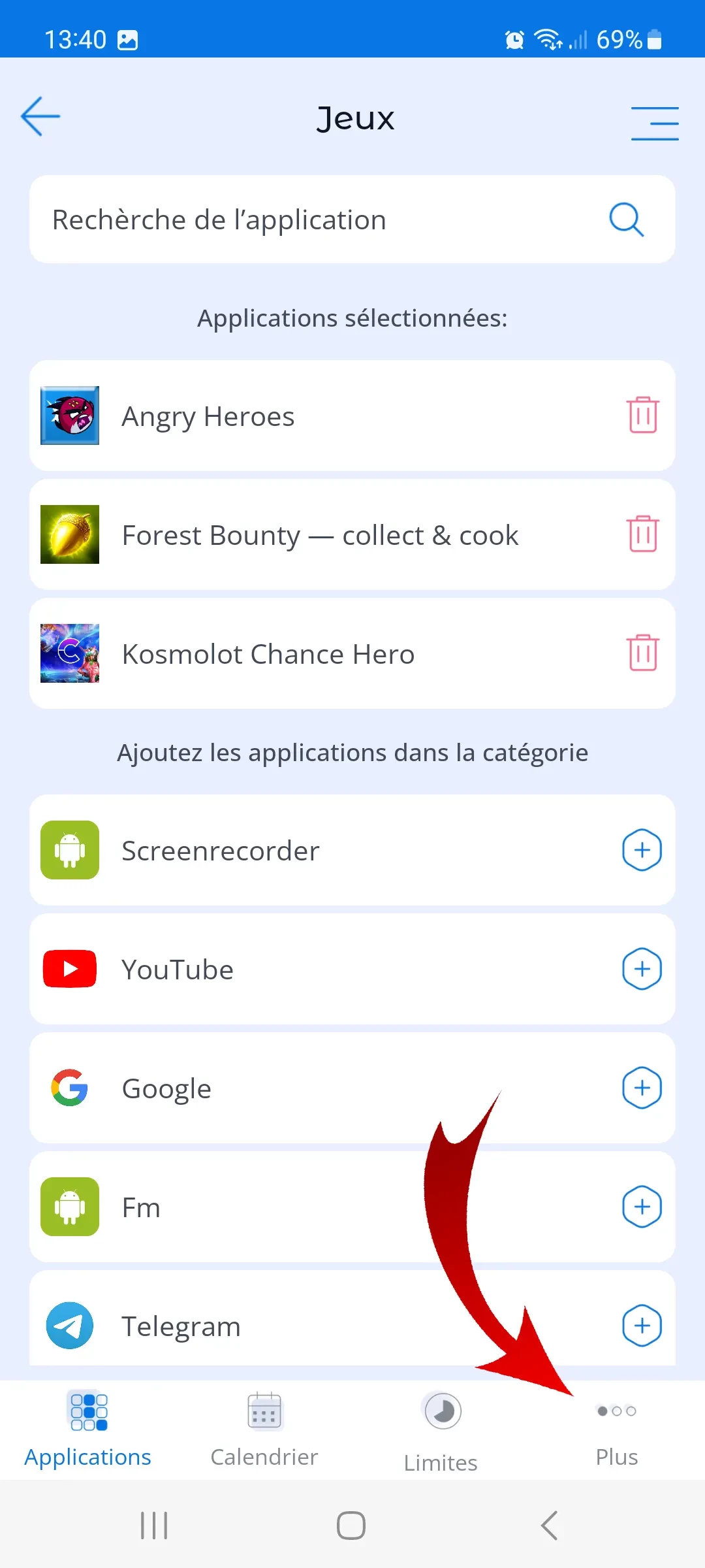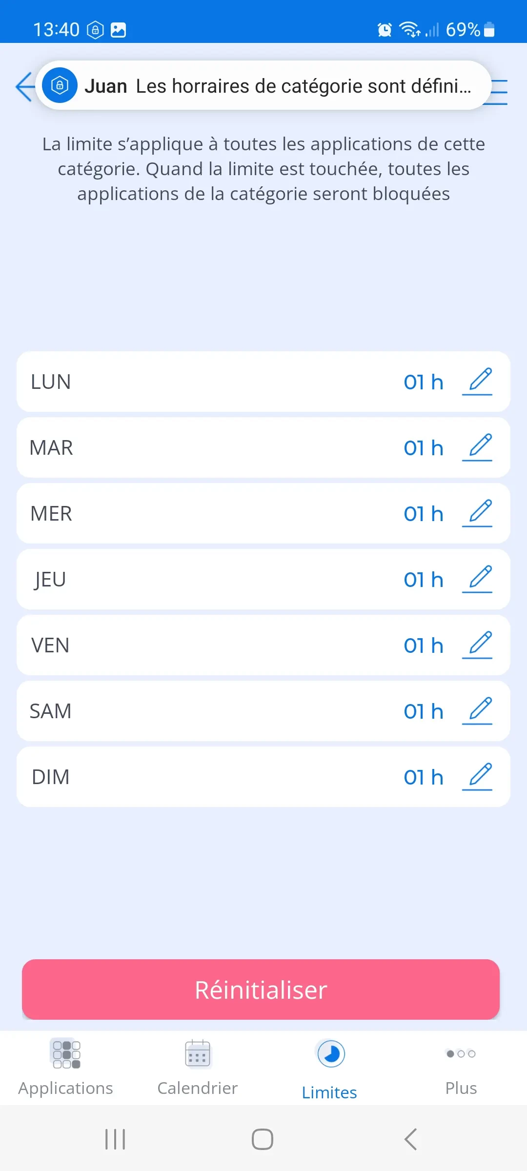 Les applications de cette catégorie fonctionneront dans la limite fixée par les parents et, une fois le temps écoulé, les applications seront bloquées.