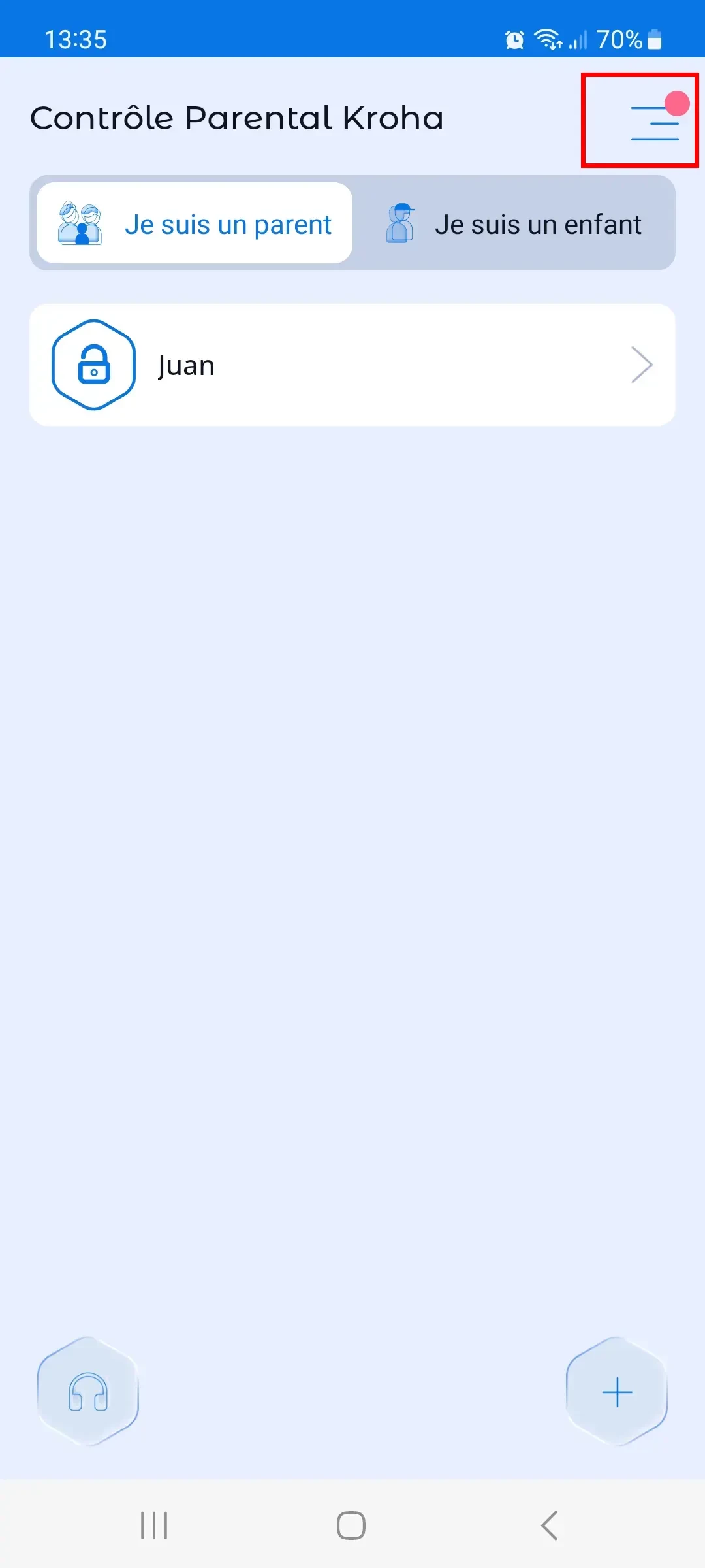 - Ouvrir l'Application de contrôle parental Kroha;