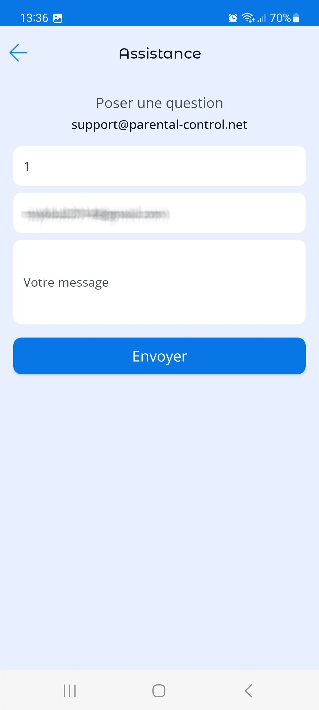 5. Support. Dans ce menu, vous pouvez obtenir une aide rapide sur les problèmes liés à l'utilisation de l'application. La réponse sera envoyée à l'adresse e-mail que vous avez spécifiée lors de l'inscription.