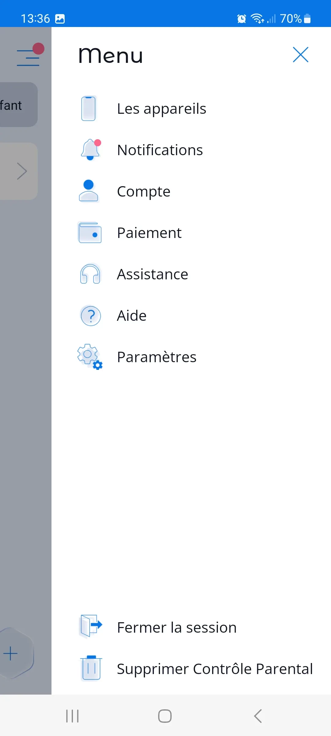 7. Paramètres. Ce menu affiche les fonctionnalités qui aideront les parents à bloquer certaines options sur le smartphone de leur enfant qui peuvent restreindre le fonctionnement de l'application.