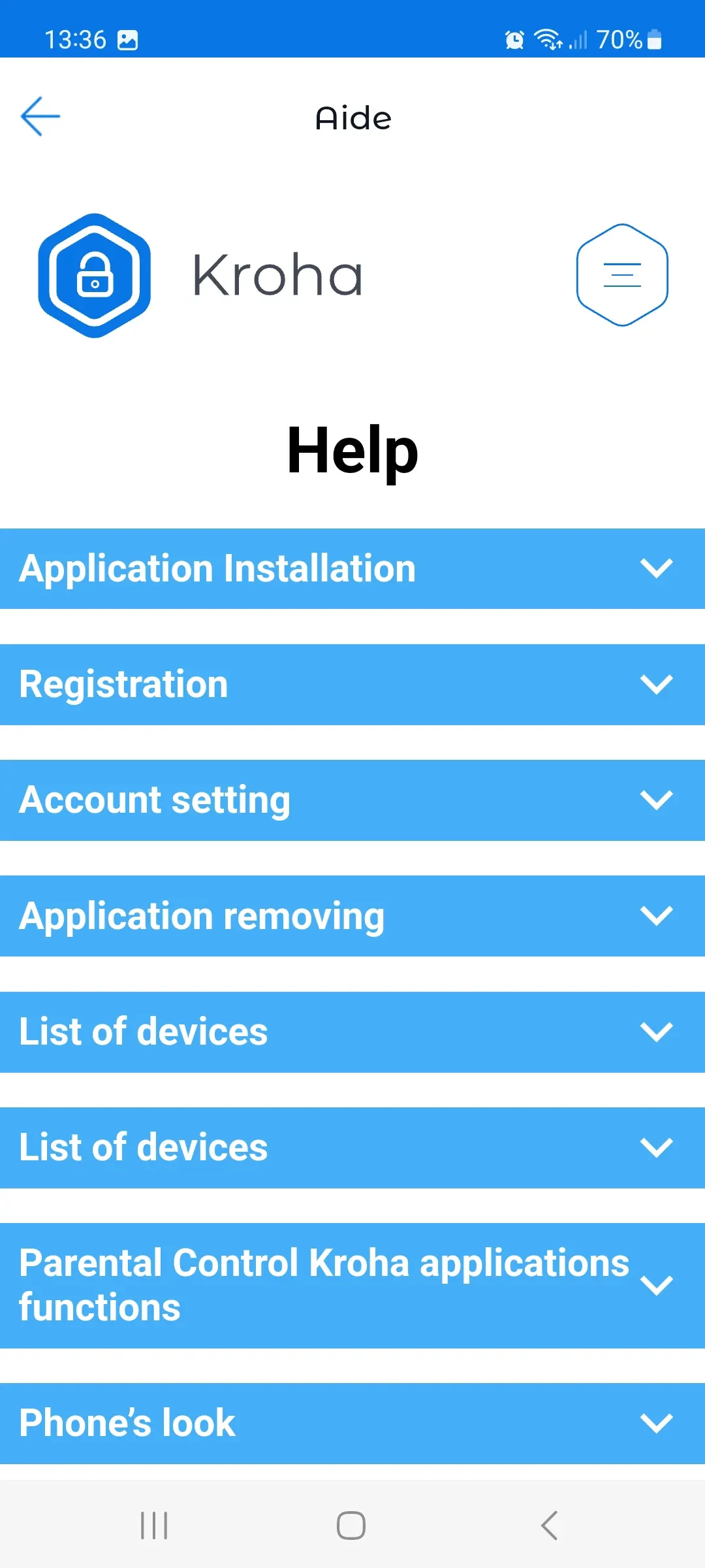 6. Questions Fréquemment Posées (FAQ). Cette section contient des instructions sur la façon d'utiliser l'application.