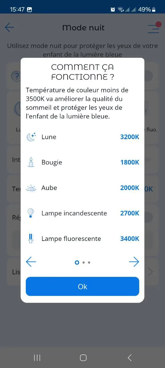 2. Sélectionnez le mode de réglage de la luminosité souhaité. Vous pouvez le faire sur l'écran principal de votre smartphone. Il est nécessaire de choisir la teinte dans laquelle les yeux de l'enfant seront moins fatigués.