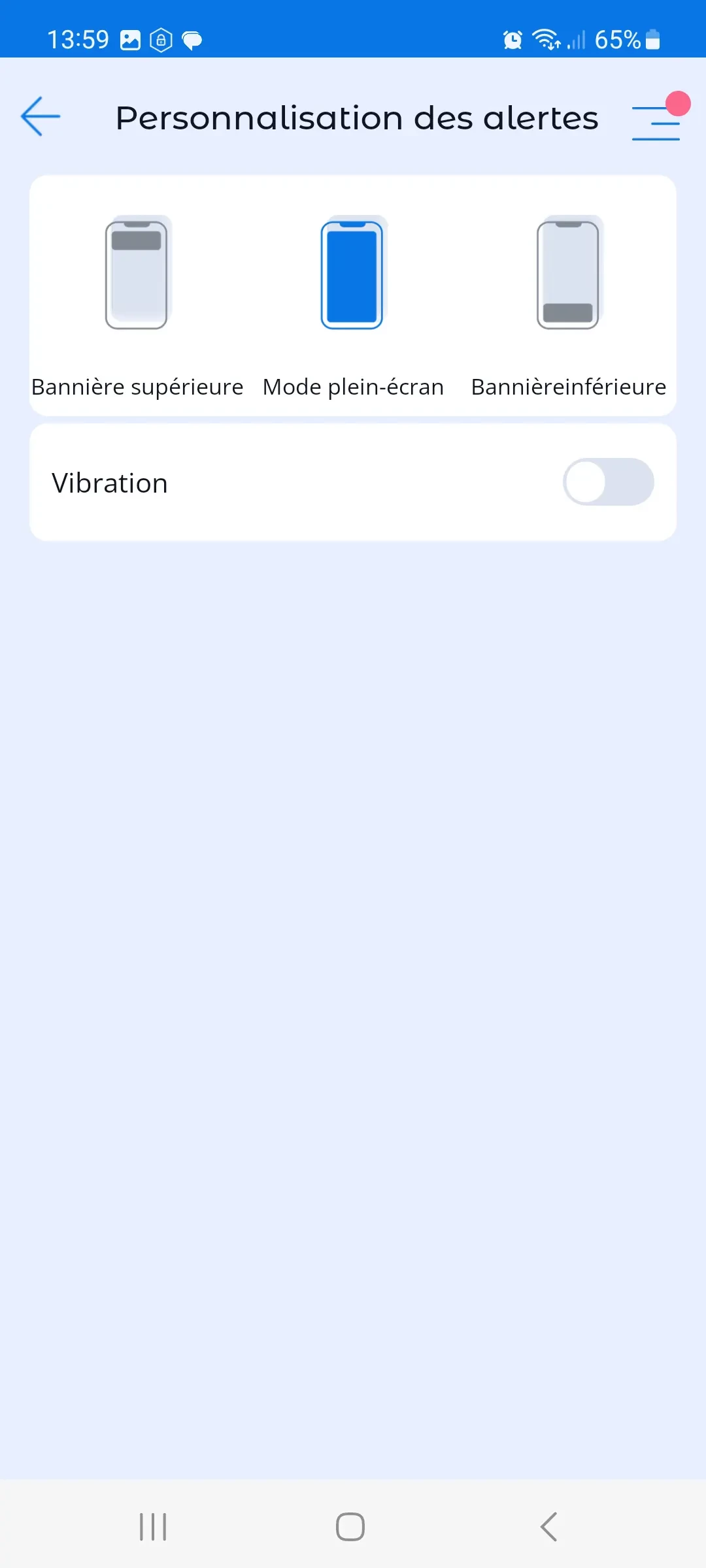 - Afficher un avertissement sous forme de bannière en haut ou en bas de l'écran