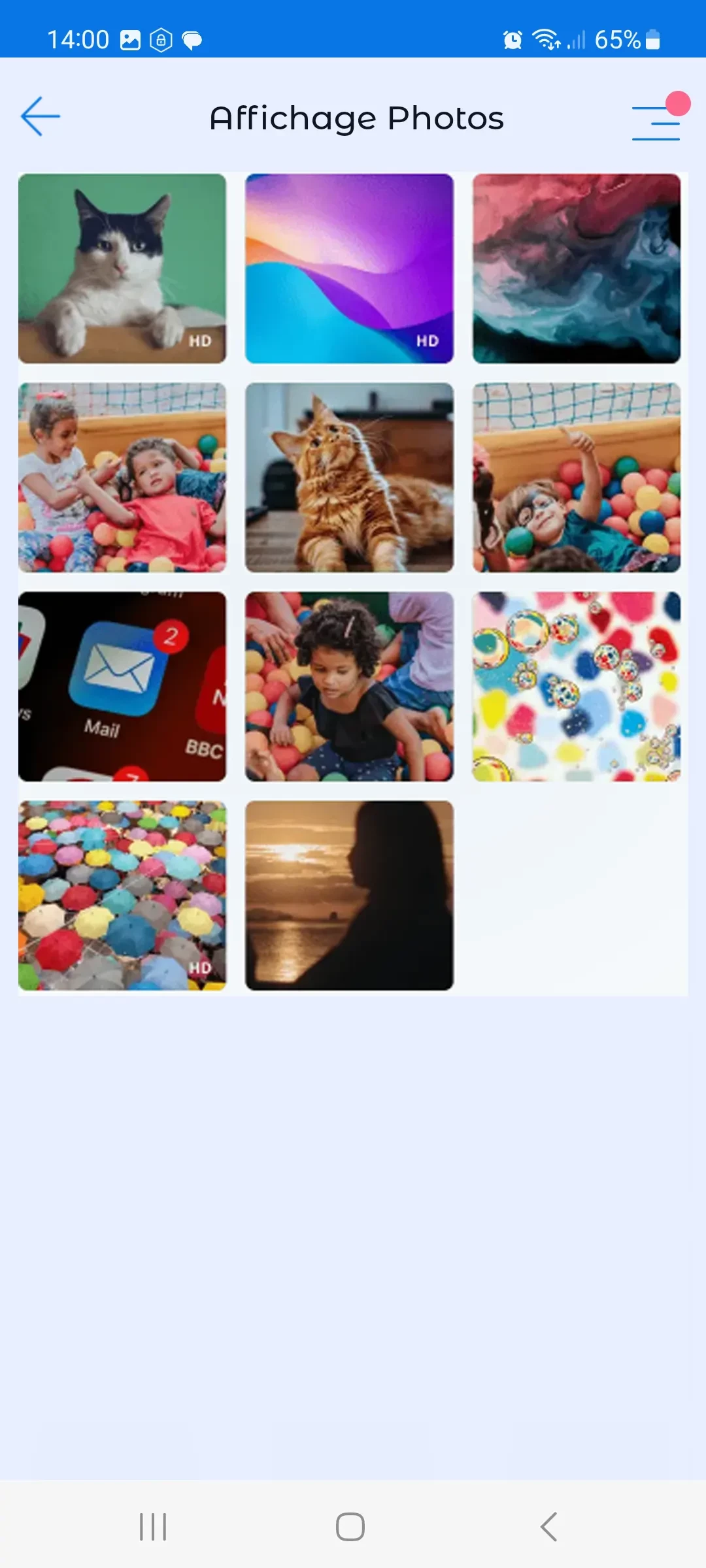 La fonction d'affichage des photos permet de visionner les dernières photos prises par un enfant ou les images enregistrées dans la galerie.