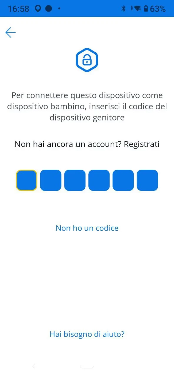3. Apri l'app di controllo parentale Kroha sul dispositivo del tuo bambino e inserisci il codice.