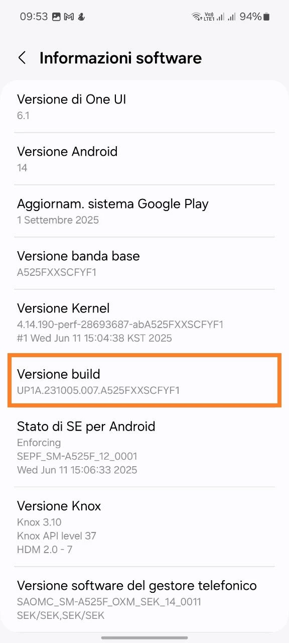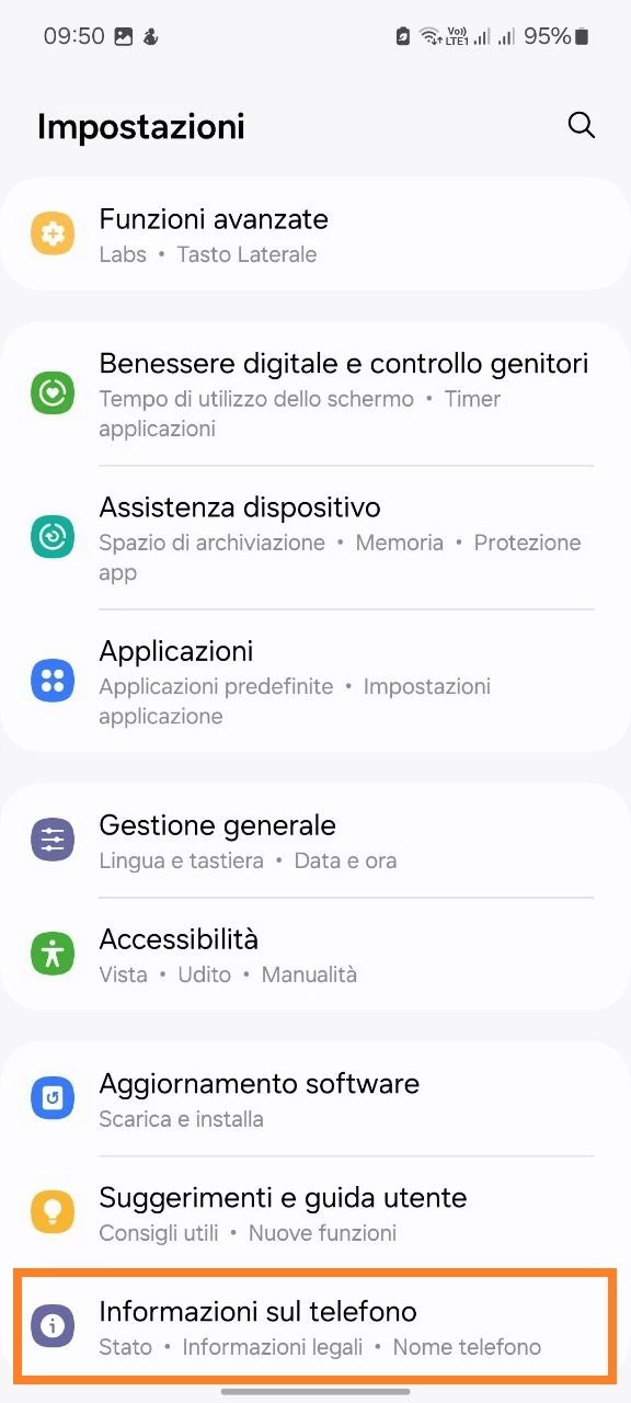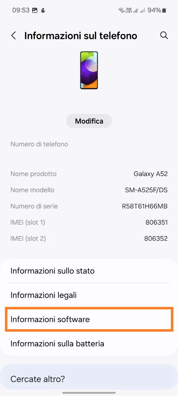 - Vai nella sezione Informazioni sul telefono;