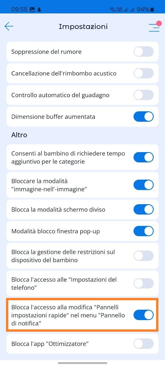 L'opzione in esame consente ai genitori di impedire al proprio figlio di manomettere le impostazioni del dispositivo. Può essere utilizzata anche dagli adulti per aggiungere o rimuovere le funzionalità desiderate presenti nel pannello di notifica superiore del telefono e vietare al bambino di modificarle.