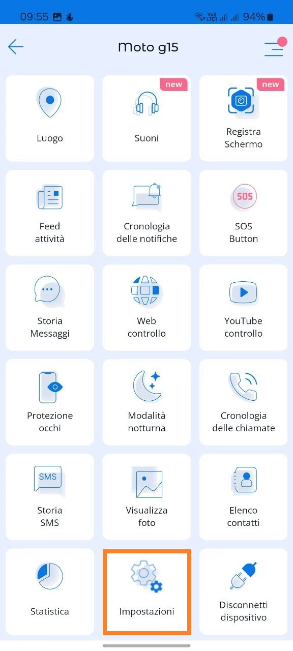 - Icone del Wi-Fi e dei dati se il tuo bambino desidera disattivare Internet e limitare il controllo remoto del suo dispositivo.