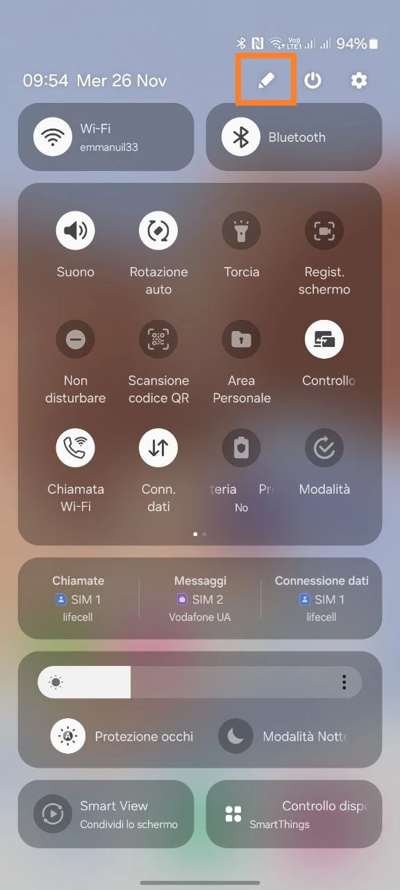 1. Apri le impostazioni nel pannello di notifica sul dispositivo del tuo bambino e tocca modifica.