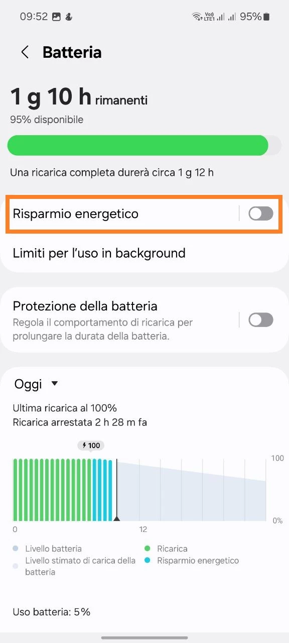 - Apri Impostazioni sul dispositivo di tuo figlio > Cura dispositivo > Batteria > Risparmio energetico > Disattiva.