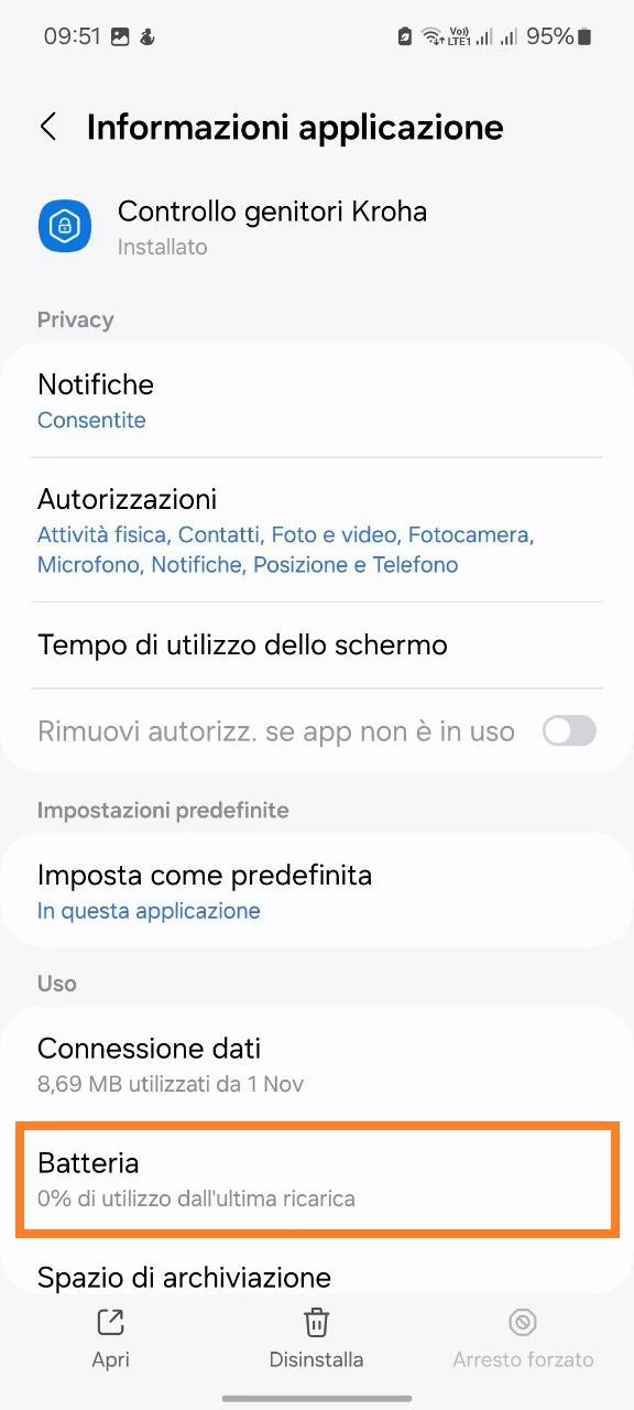 - Apri Impostazioni sul dispositivo di tuo figlio > App > parental control Kroha > Batteria > Non ottimizzare.