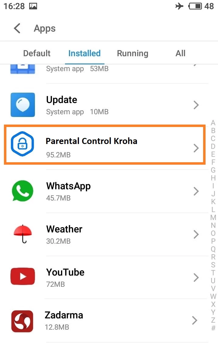 - Apri l'app Impostazioni sul telefono di tuo figlio > Apri la sezione App > Trova l'app parental control Kroha > Esegui in background > Consenti.