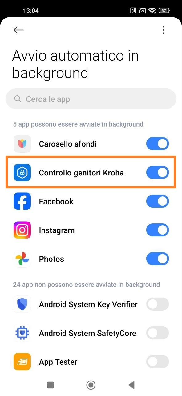 Come ottenere il funzionamento dell’app Kroha in background su Xiaomi?