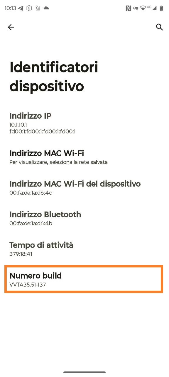 - Trova la voce Numero build e tocca rapidamente 5-8 volte;