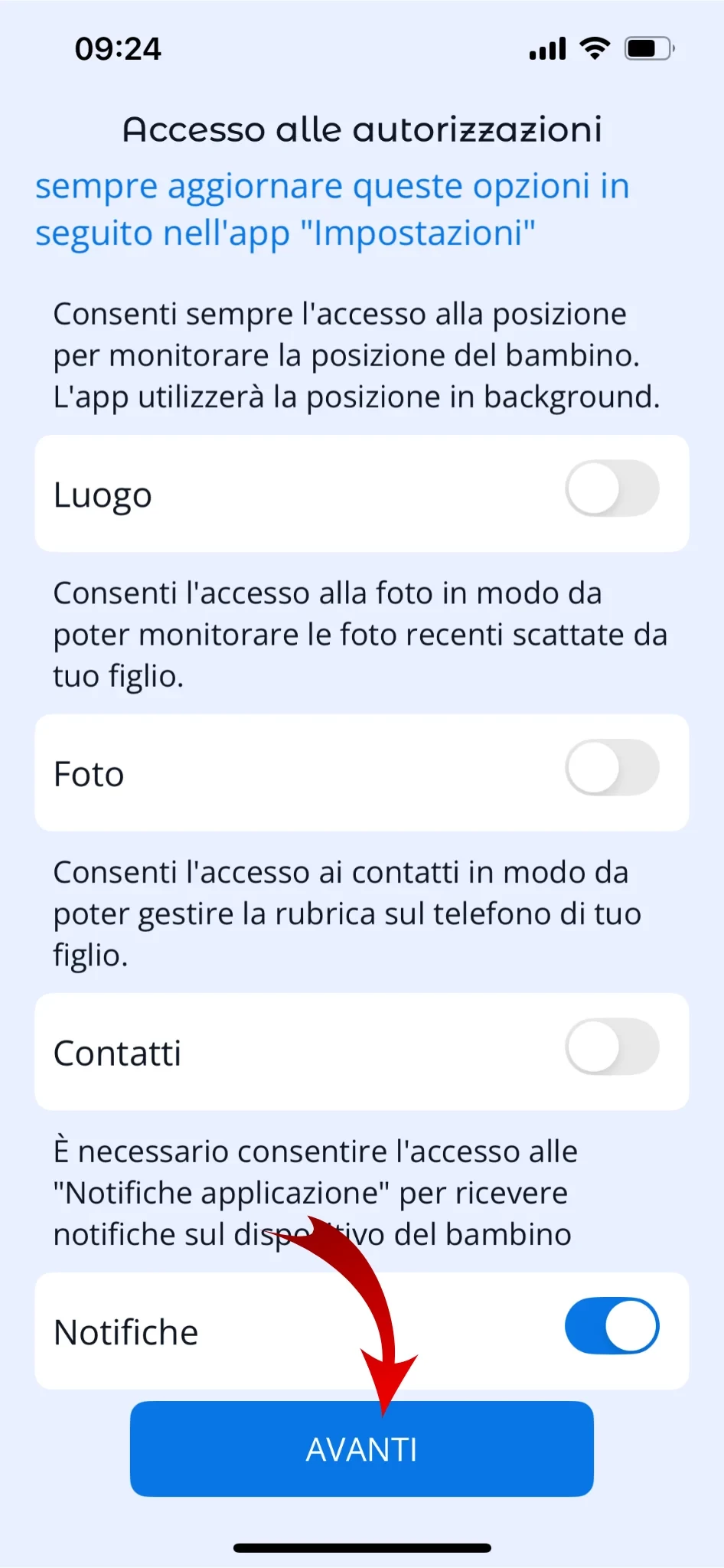 Nota bene! Prima di installare l'app di controllo genitori Kroha Advanced, il dispositivo del bambino deve essere sbloccato (la funzione di blocco del telefono non deve essere attivata).