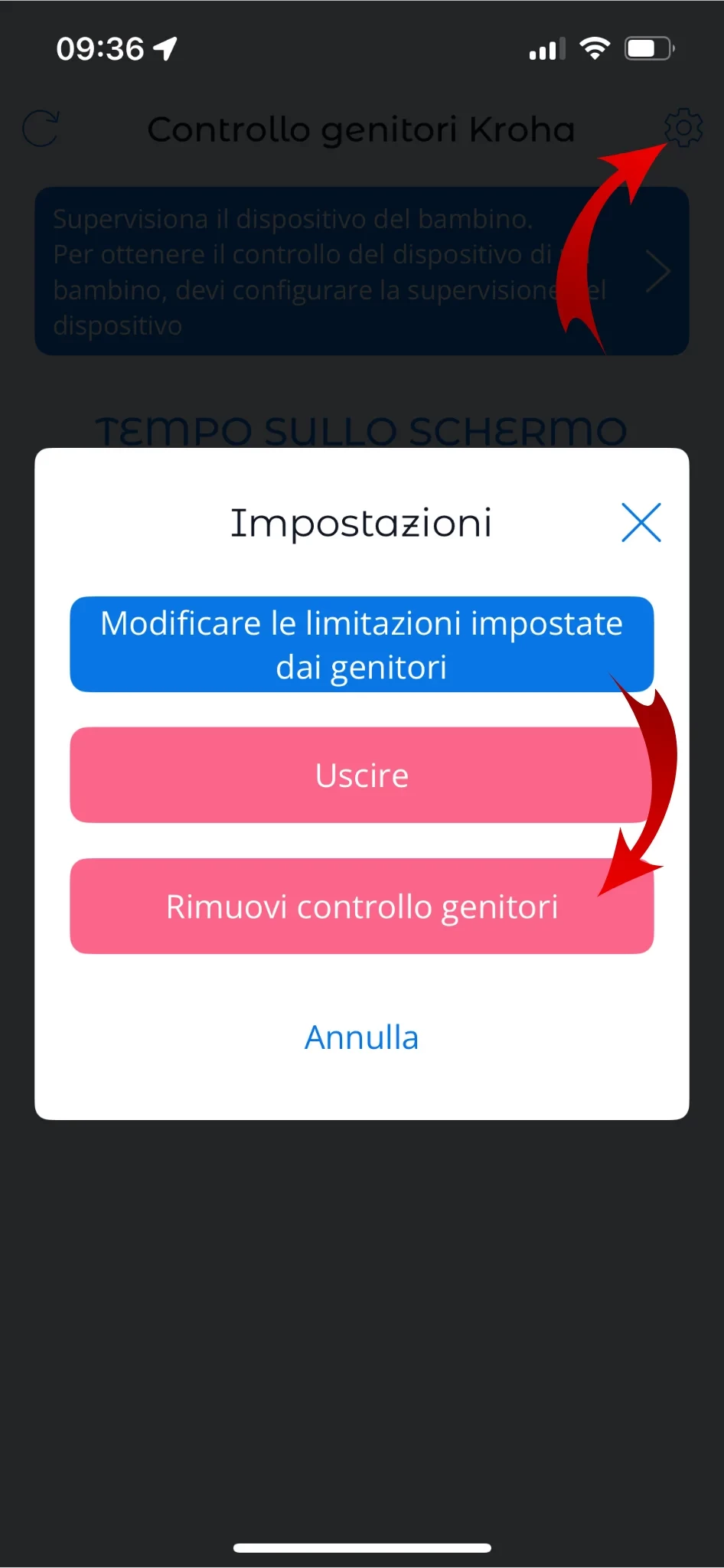 Come togliere il controllo genitori Kroha su iOS?