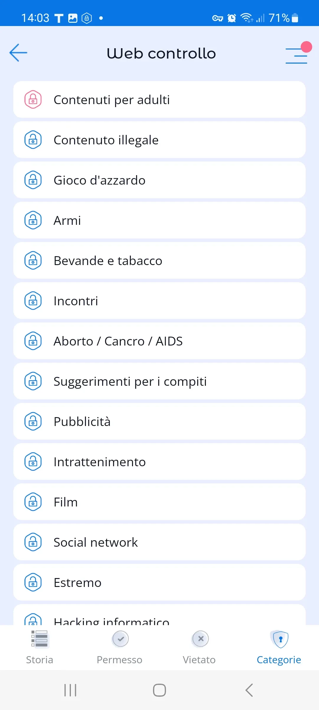 - Blocco dei siti per adulti, ad esempio bloccare siti porno;