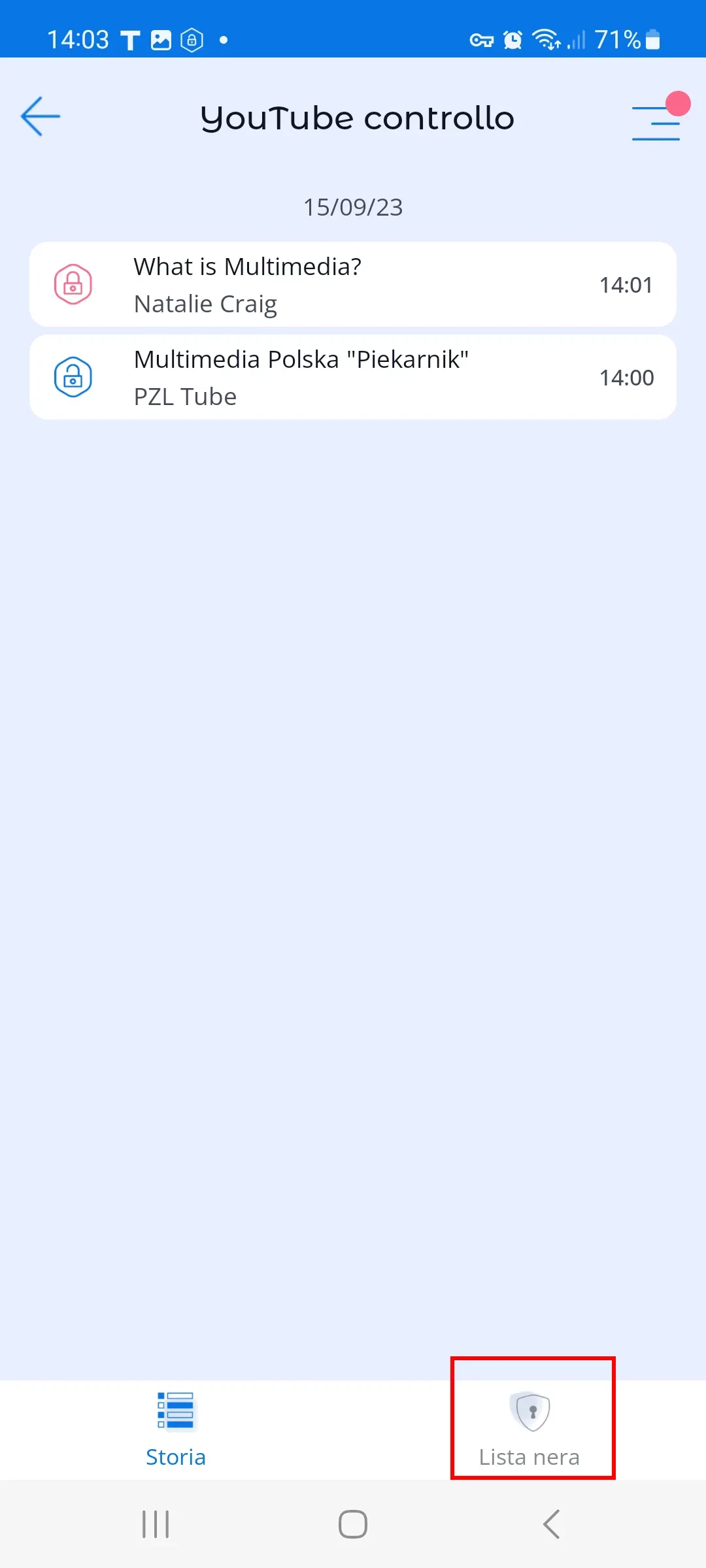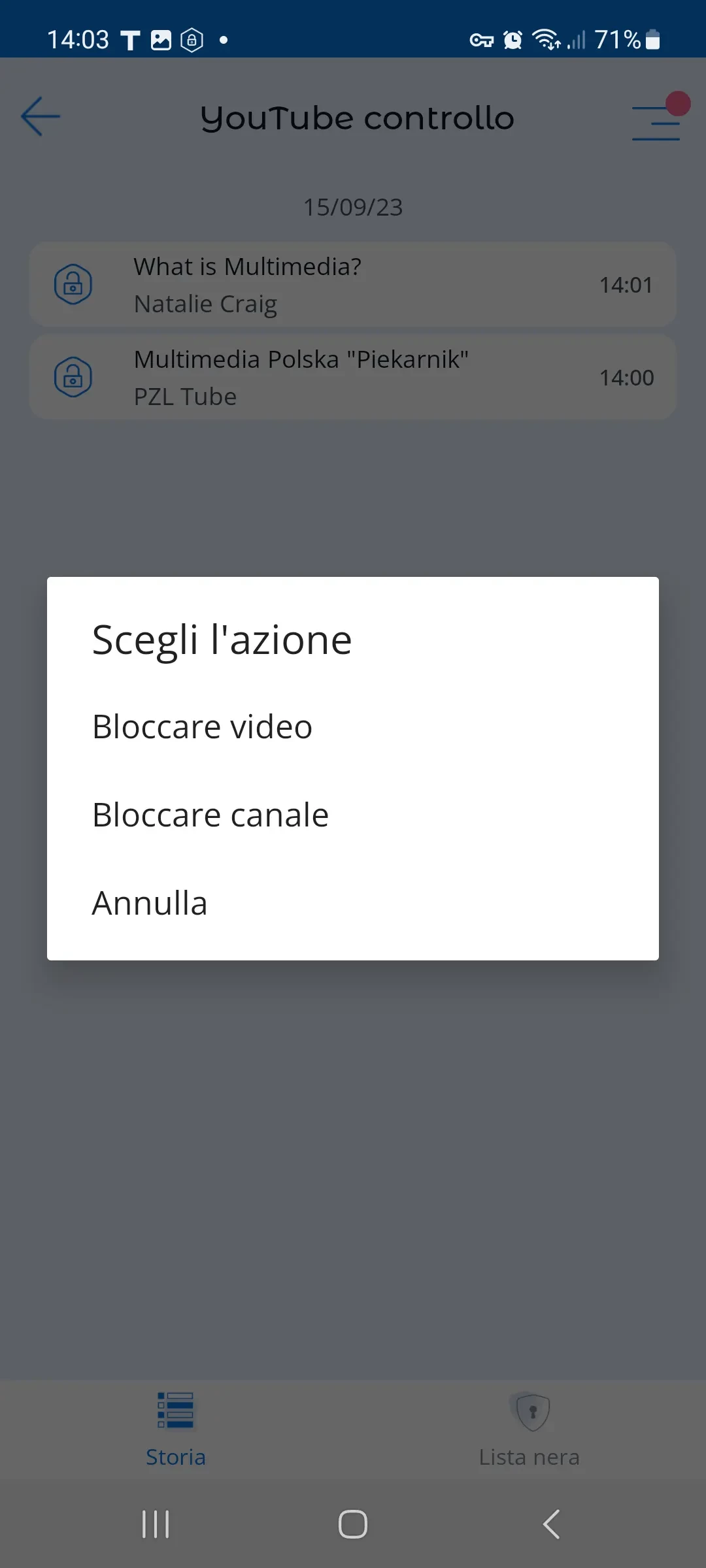 La cronologia dei video di YouTube visualizzati dal bambino. Blocco dei video su YouTube indesiderati o canale di YouTube, con l'opzione di creare una blacklist. Limiti di tempo su YouTube, restrizioni su YouTube e guida su come mettere restrizioni su YouTube.