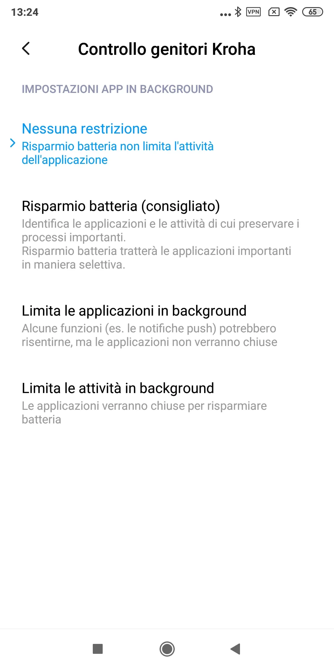 4. È necessario configurare l'app controllo genitori Kroha per essere eseguita in background.