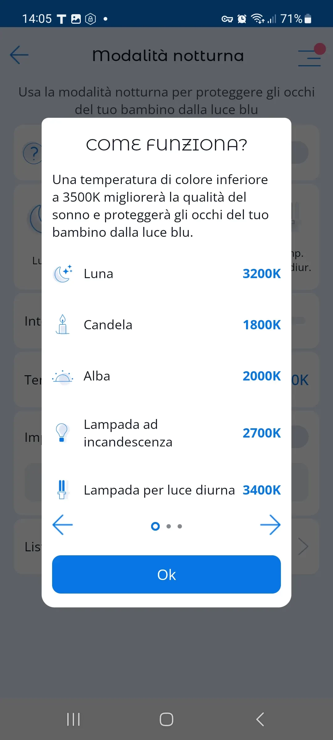 Questa opzione permette di proteggere la vista dagli effetti negativi dello spettro della luce blu emesso dal display del dispositivo nelle ore serali. Gli oftalmologi raccomandano di ridurre la luminosità dello schermo nelle ore buie, rendendo la luce più morbida e confortevole per gli occhi.