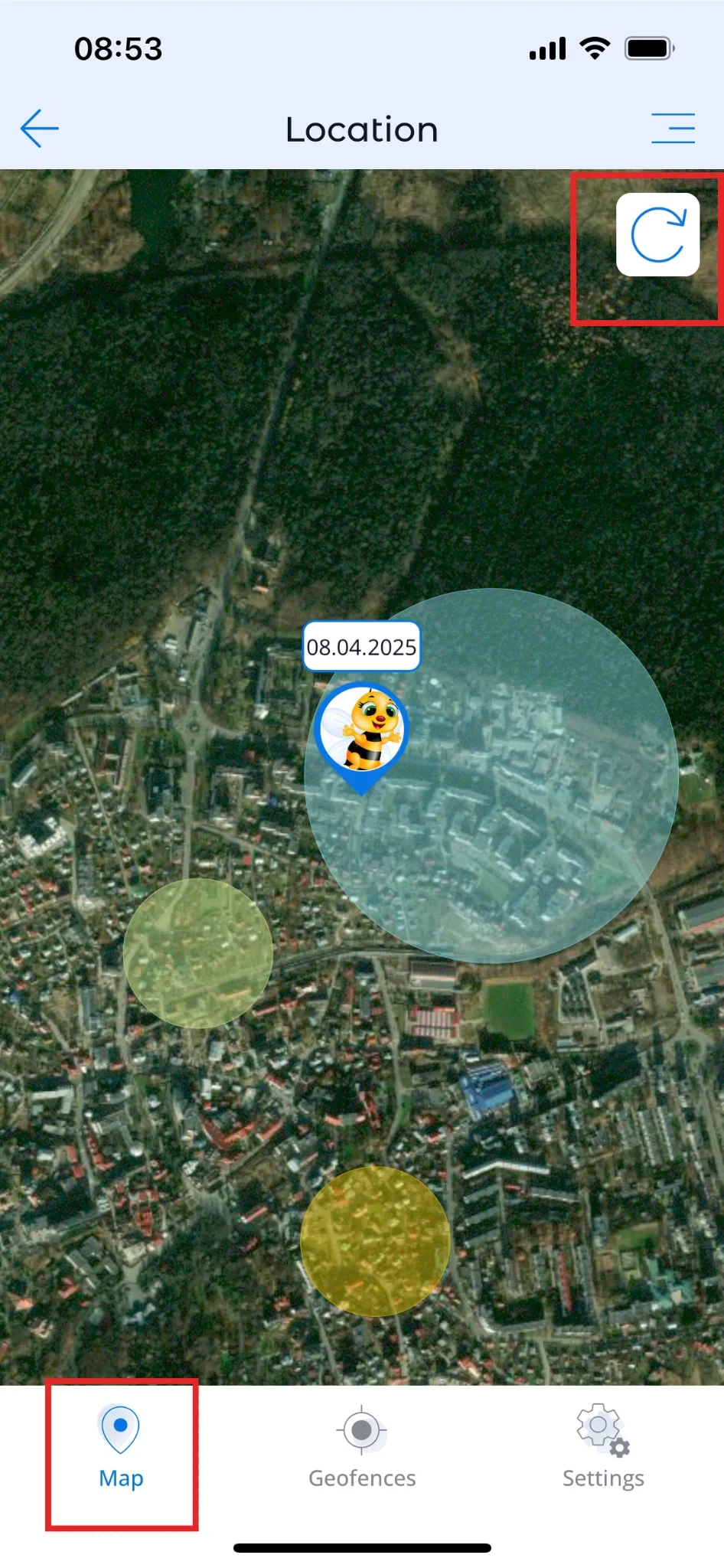 Qui viene mostrata la posizione attuale del dispositivo del bambino. Sopra il puntatore che vedi sulla mappa, è indicata la data e l’ora in cui è stata ricevuta l’ultima coordinata dal dispositivo. Se la coordinata è stata ricevuta molto tempo fa e non è più aggiornata, clicca "Aggiorna" nell’angolo in alto a destra.