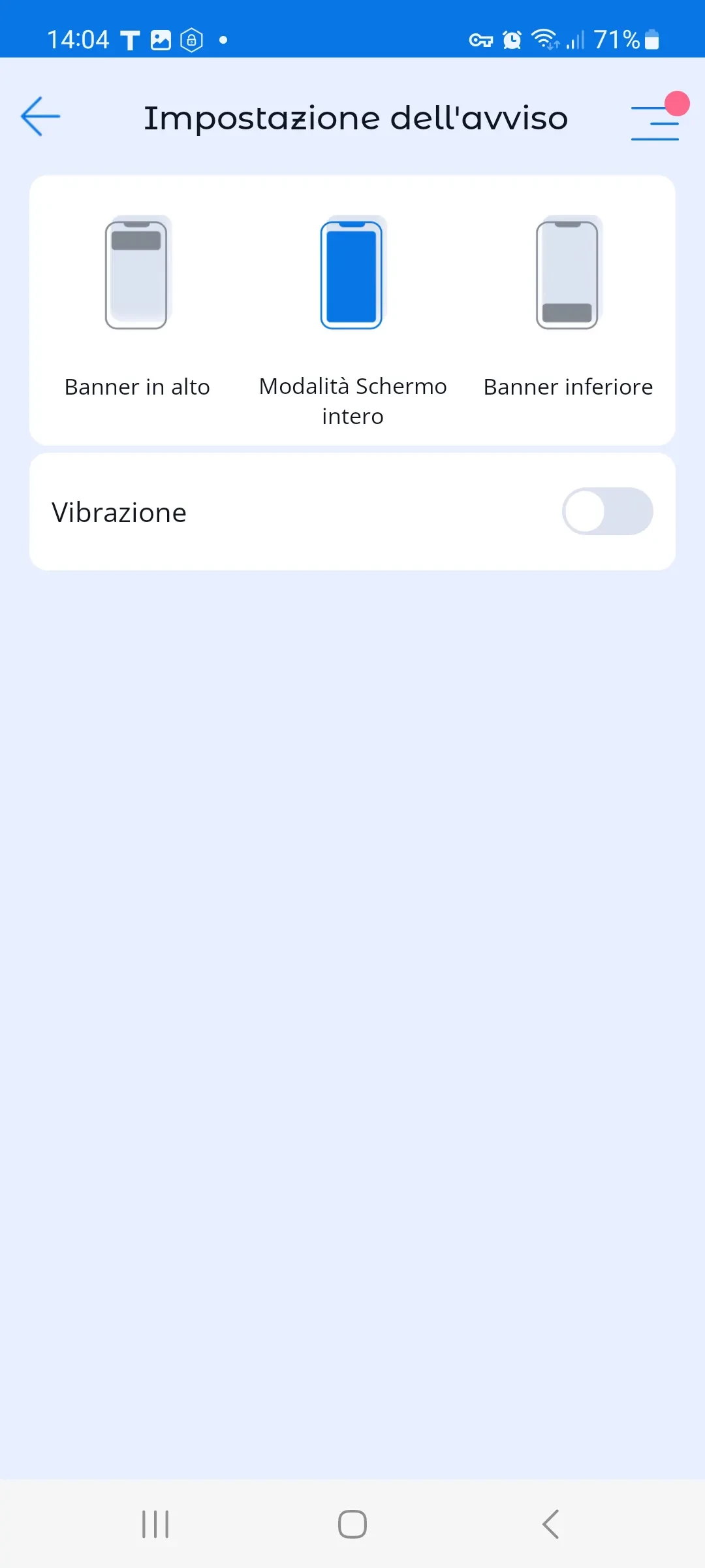 - Visualizzare un messaggio di avviso sotto forma di banner nella parte superiore o inferiore dello schermo