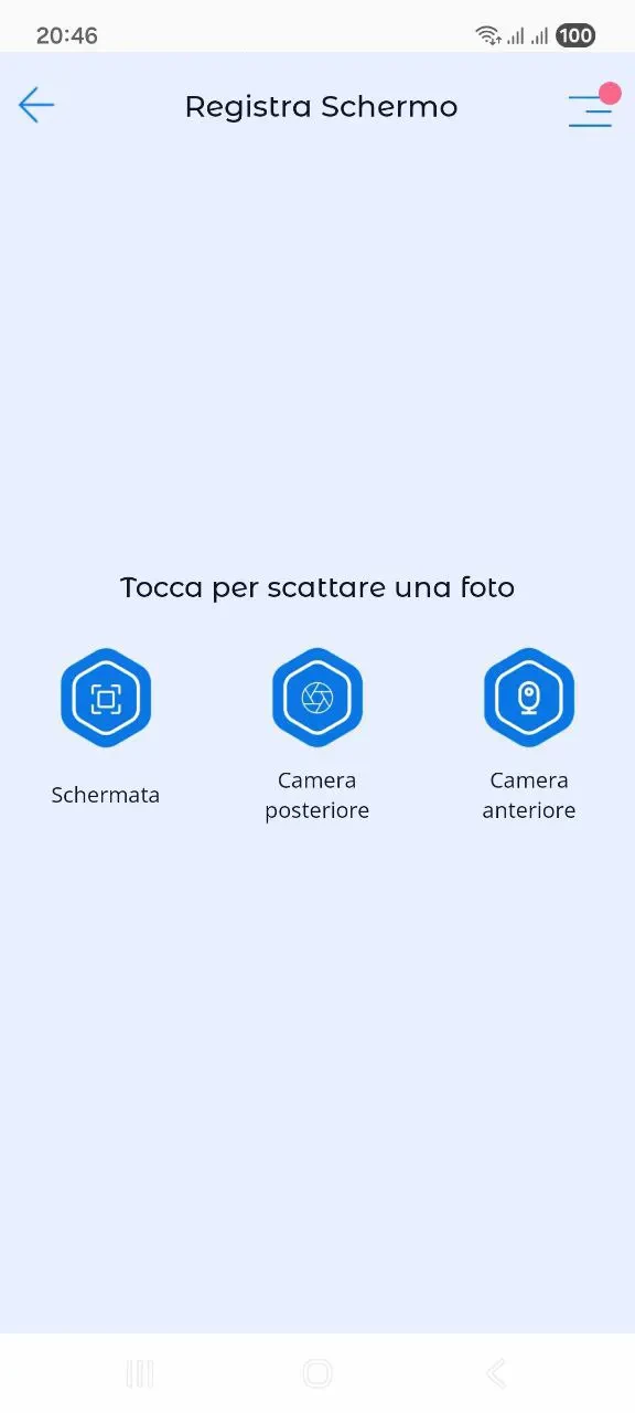 Nella sezione "Screen captures", i genitori, grazie a parental control Kroha, hanno la possibilità di effettuare uno screenshot dal dispositivo del bambino o scattare una foto con la fotocamera posteriore o anteriore.