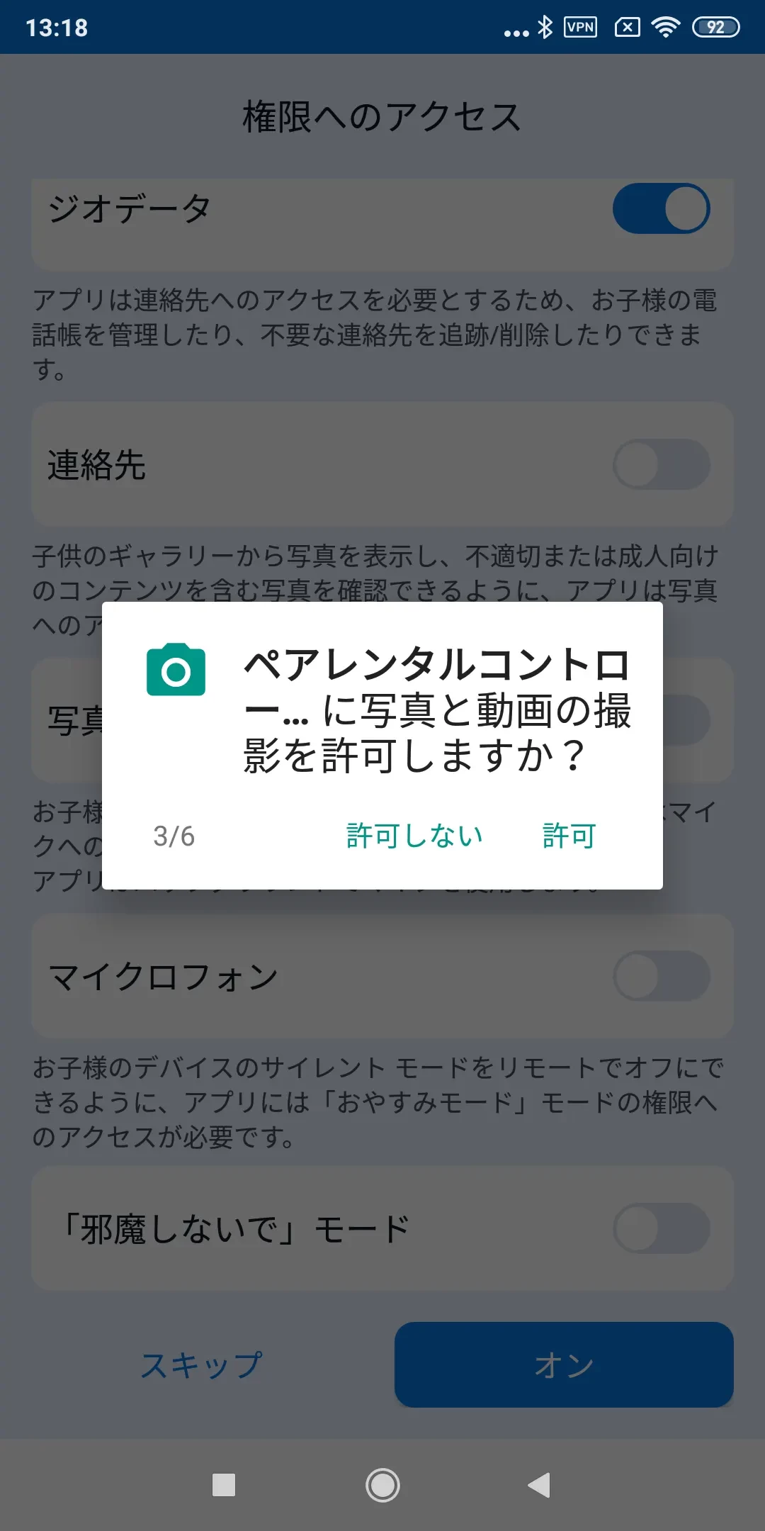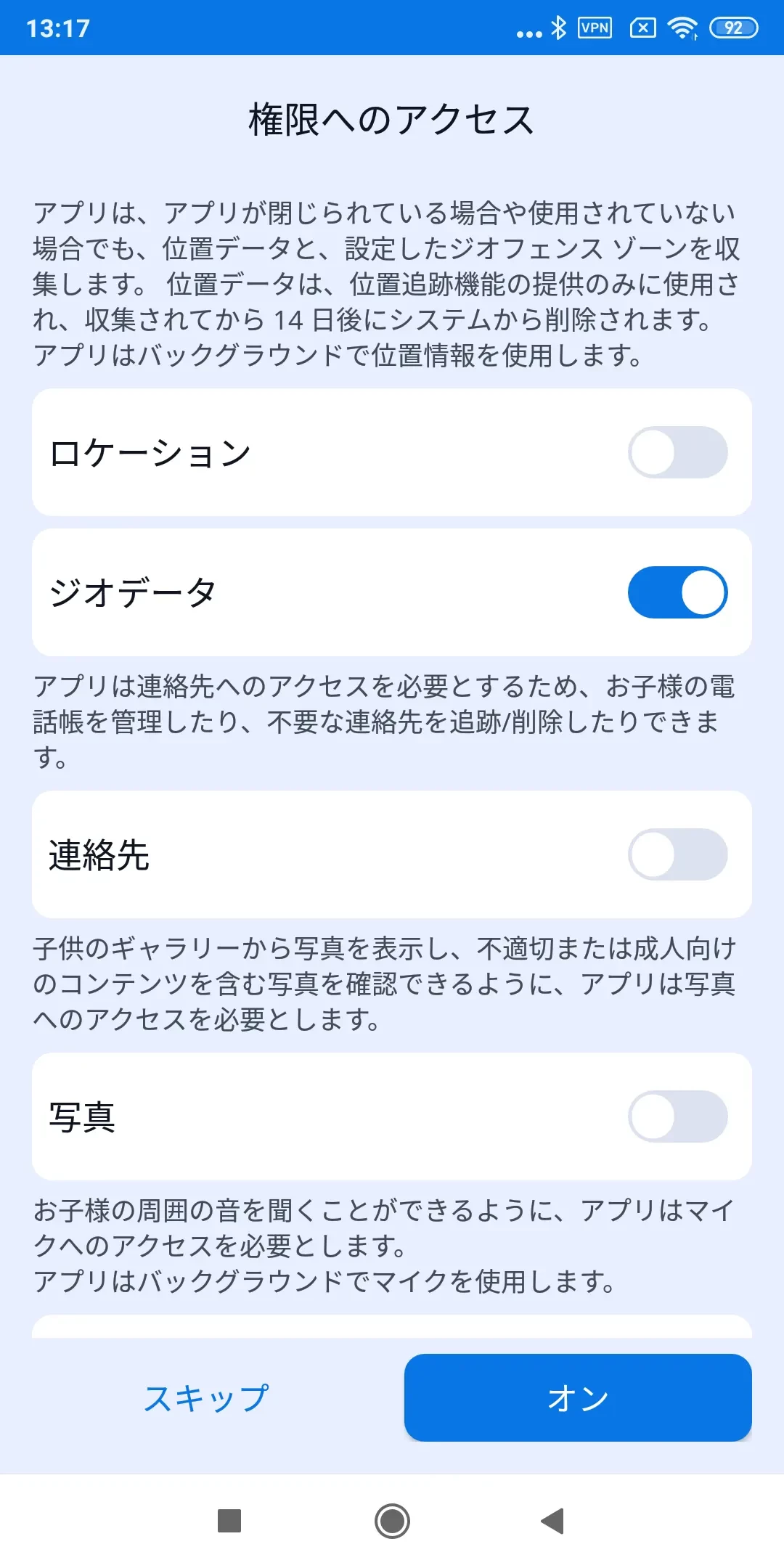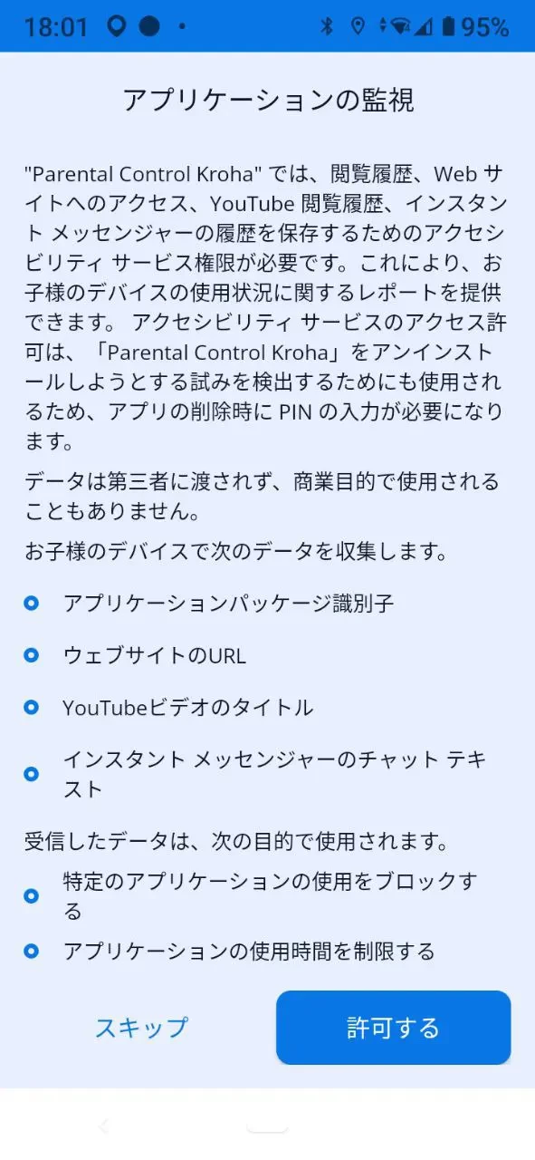 アプリが適切に動作するためには、子供のデバイスをアカウントに接続する際に権限を設定する必要があります。