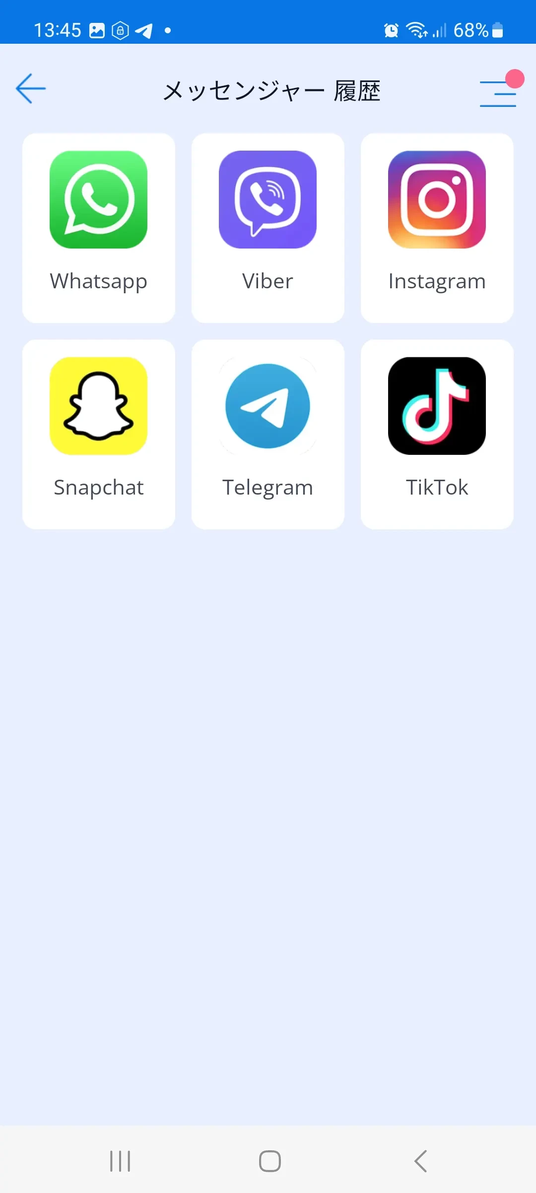 Kroha携帯監視アプリの「ショート メッセージ 履歴」機能では、Telegram、Viber、Whatsapp、Tiktok、Instagram、Snapchat、Skype、Discord、Vk、Line、Signal、Tinder、Badooなど13の人気メッセンジャーで子供のコミュニケーションを閲覧できます。
