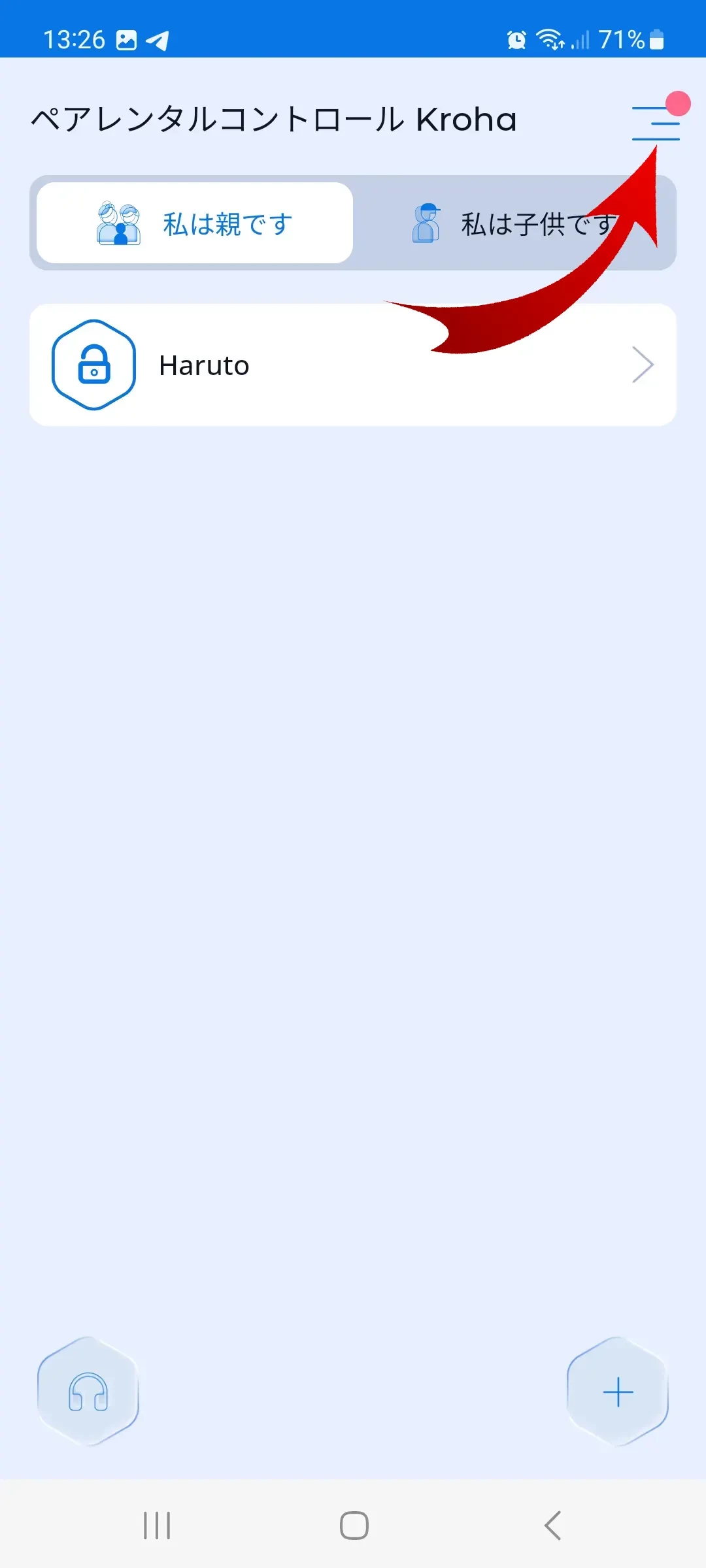 - Krohaペアレンタルコントロールアプリを開く;
