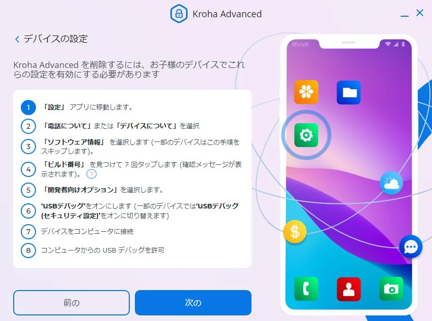 お子様のデバイスにKrohaペアレンタルコントロールアプリがインストールされている場合は、以下の手順に従ってアプリをアンインストールしてください:
