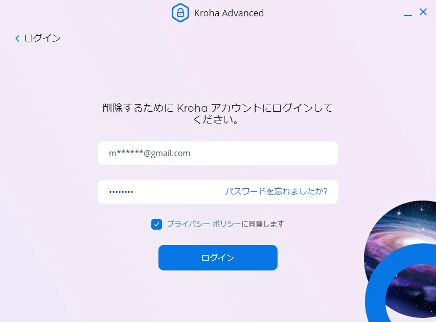- 登録時に提供したメールアドレスとアカウントのパスワードを入力し、「ログイン」をクリックする;