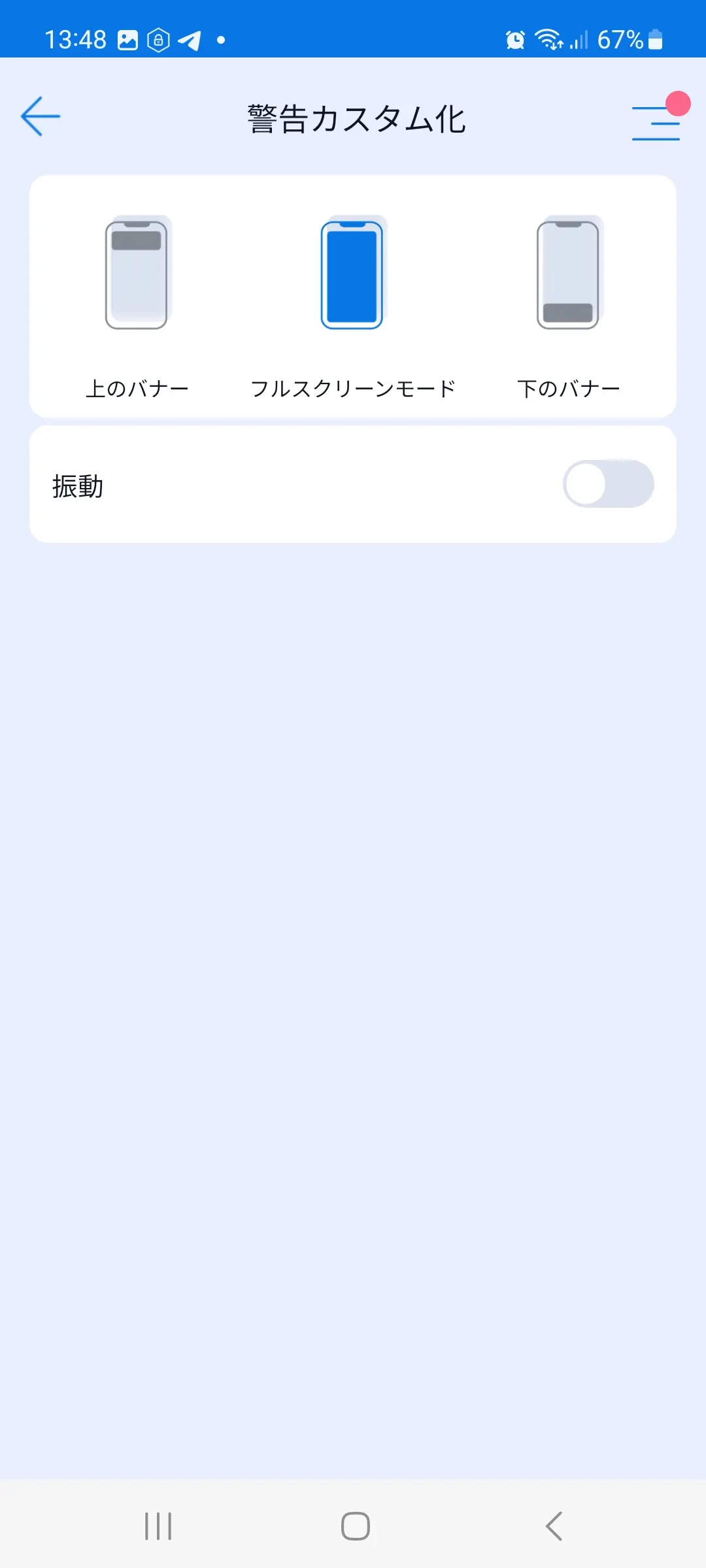 - 画面の上部または下部にバナー形式で警告を表示する。