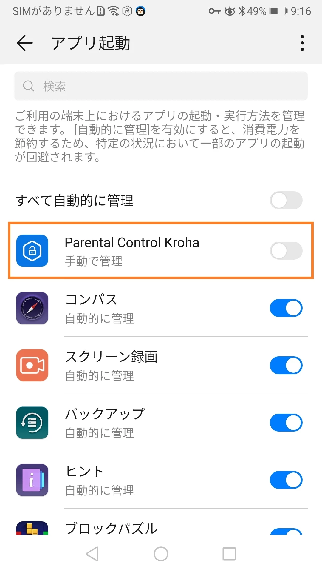 HuaweiでペアレンタルコントロールKrohaアプリをバックグラウンドモードで起動する方法